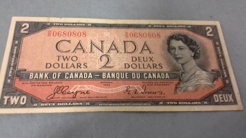 Rare Canadian Devils Face 1954 Canadian Two Dollar Bank Note