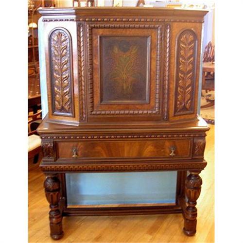 <tr><td>Title:Rare Carved Walnut China Cabinet with Patterned</td></tr>
