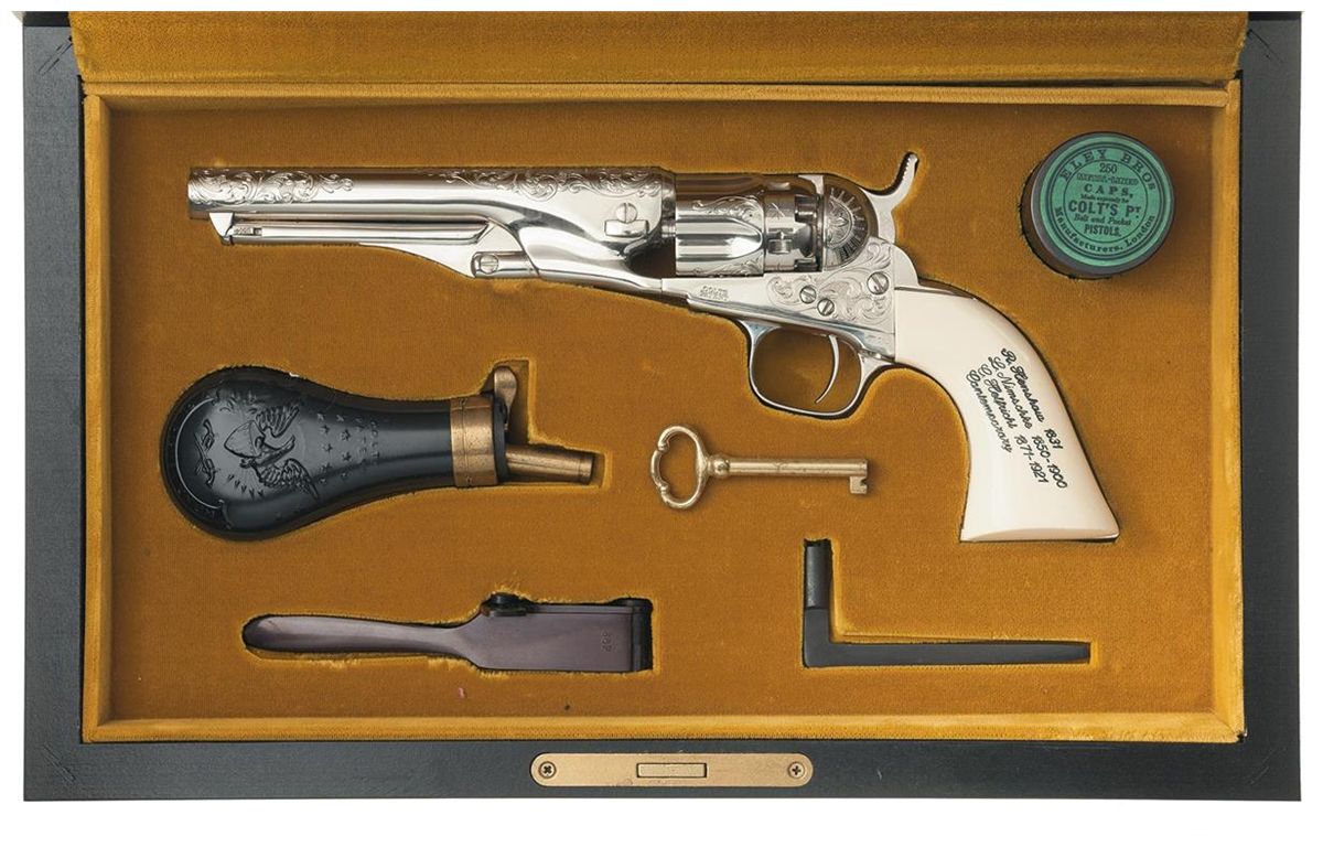 Rare Cased Colt Factory Engraving Sampler Second Generation 1862 Police Percussion Revolver with Box and Accessories