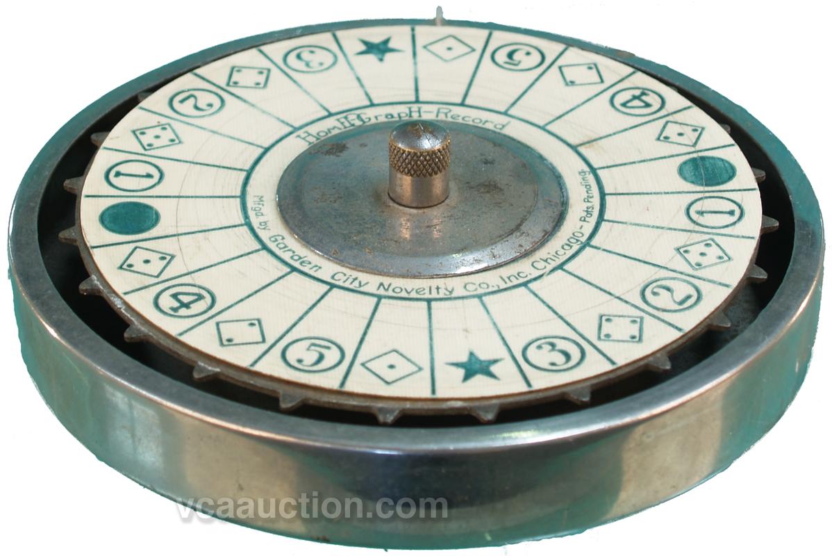 Rare Cast-Iron Countertop "Home-O-Graph-Record" Gambling Wheel MFG By Garden City Novelty Co. Inc., Chicago - 7" Diam