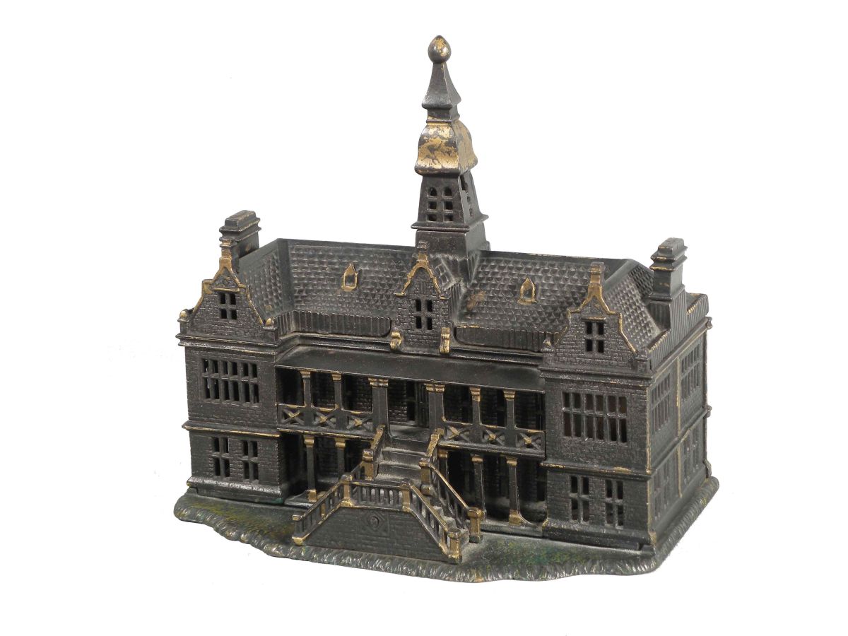 Rare Cast Iron Ives-I.B. & Company Palace Bank. Ca. 1890. Original trap, excellent condition. 8 X 7 1/2 X 5 1/4 inches.