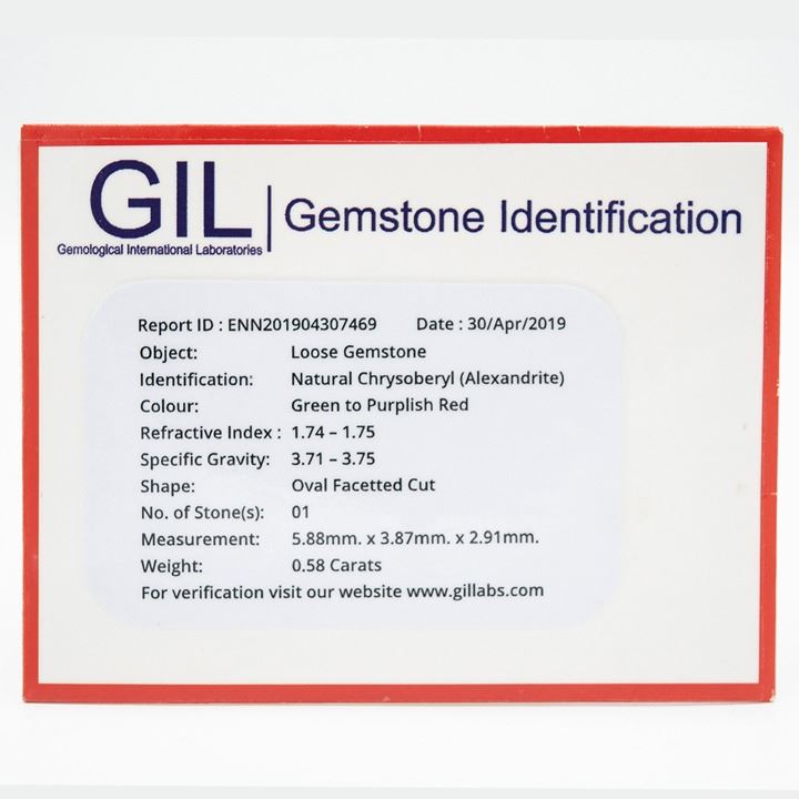 Rare Certified Natural Color Change Alexandrite. The color spectrum change ranges from a beautiful green, pink and blue. Fine oval cut measuring 5.88 x 3.87 x 2.91 mm. Treatments : None. Please see certification for further details.