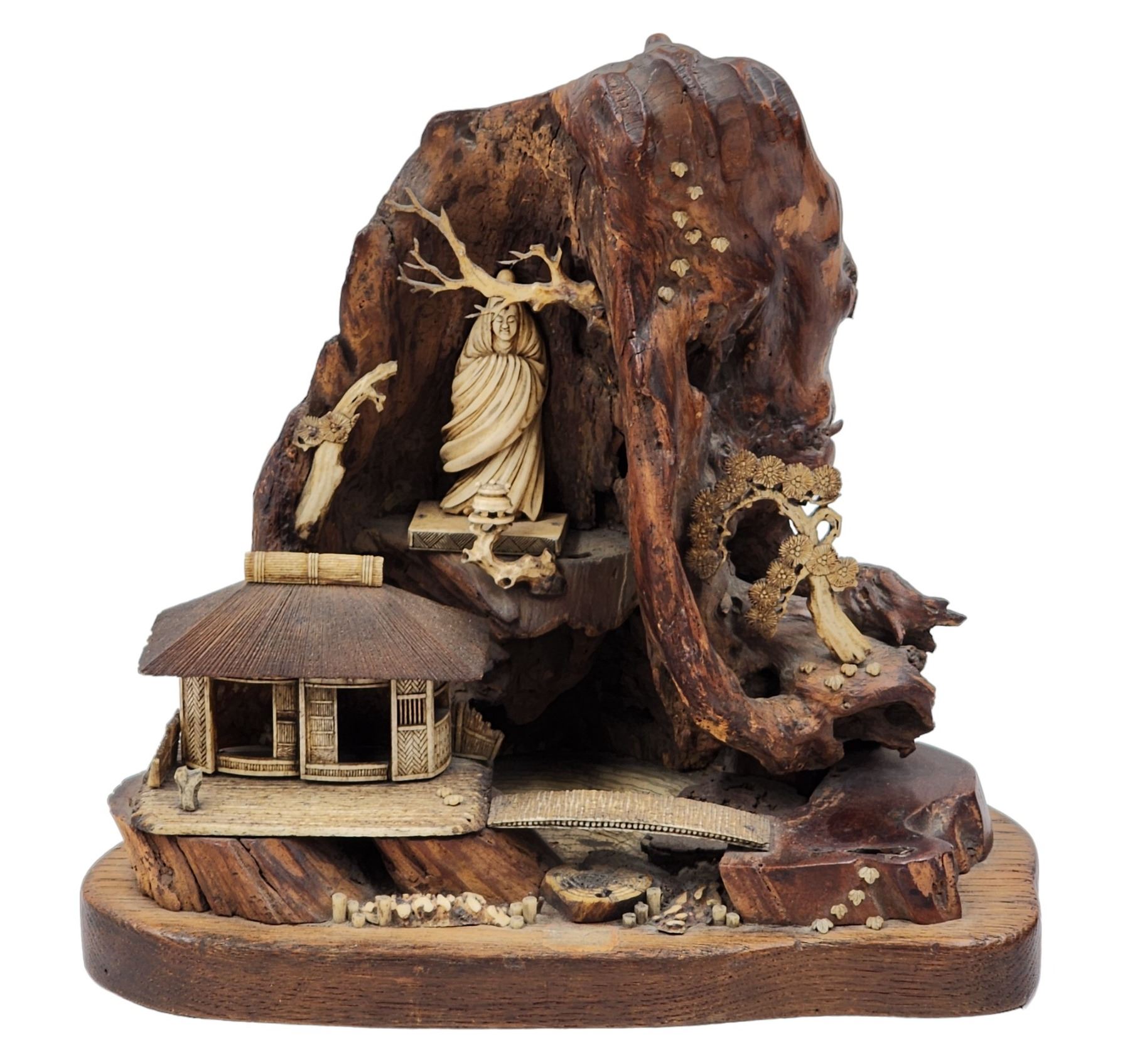 Rare Chinese Or Japanese Sculpture With Carved Figures 19th Century . Measures approx. 10.5" X 11" X 7". Provenance: One Person Private Estate Central Florida.
