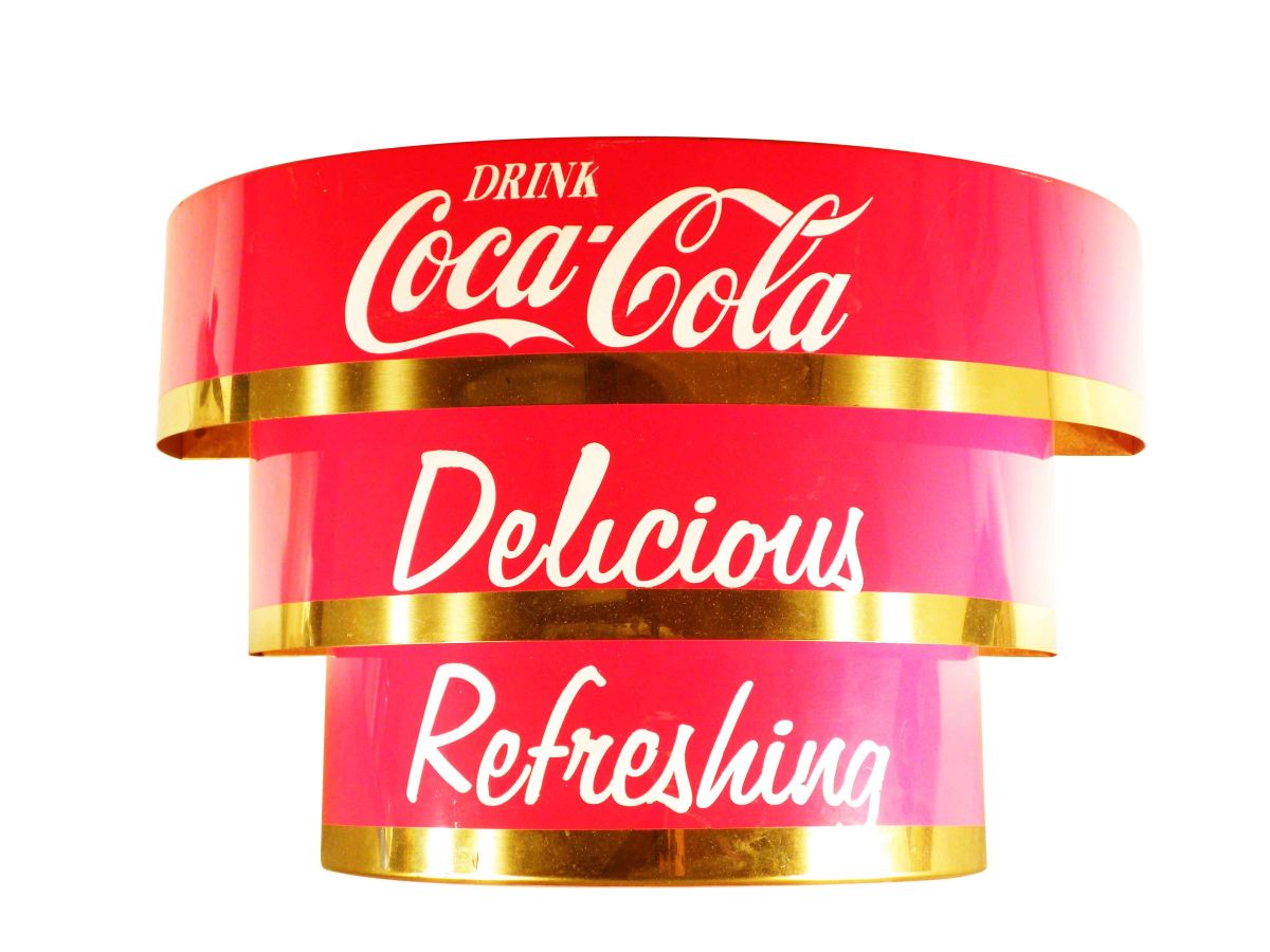 Rare Coca Cola Theatre Light. Tin and brass. Excellent working condition. 24 X 14 X 12 inches.