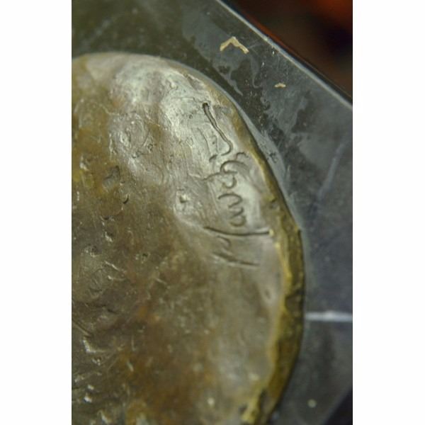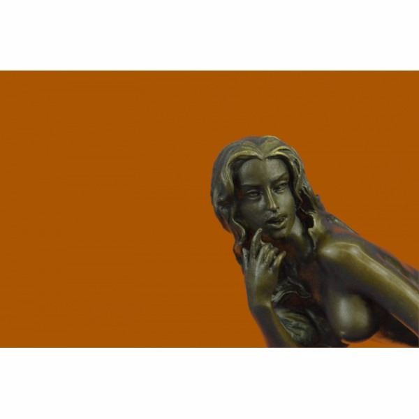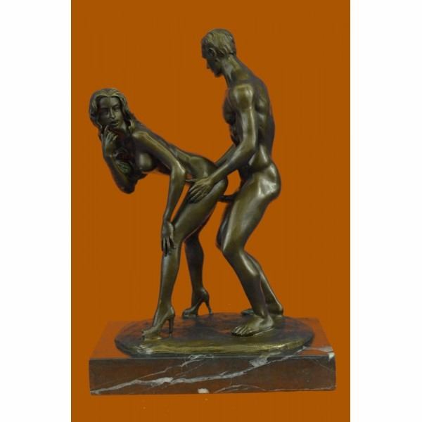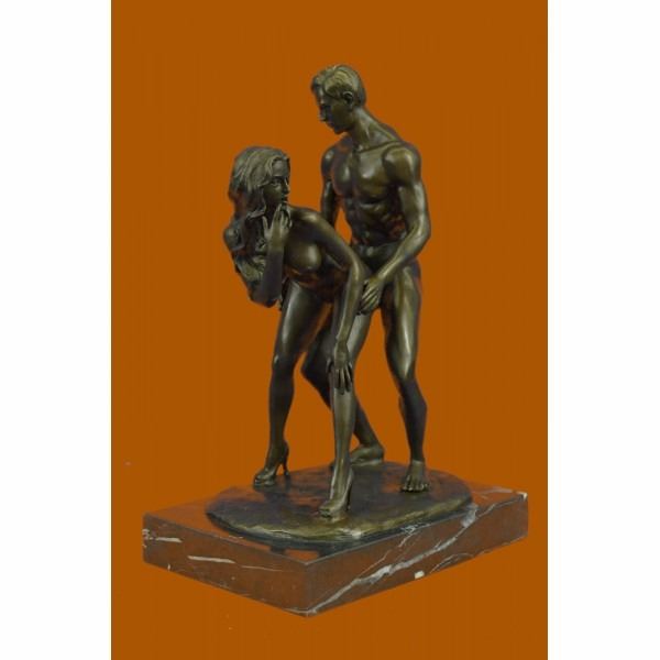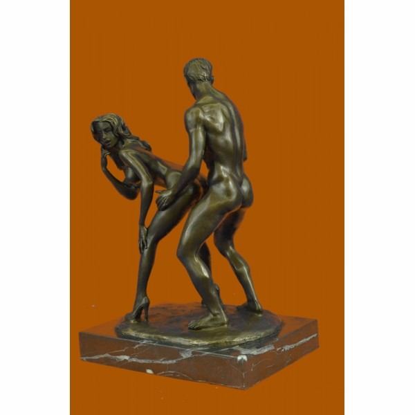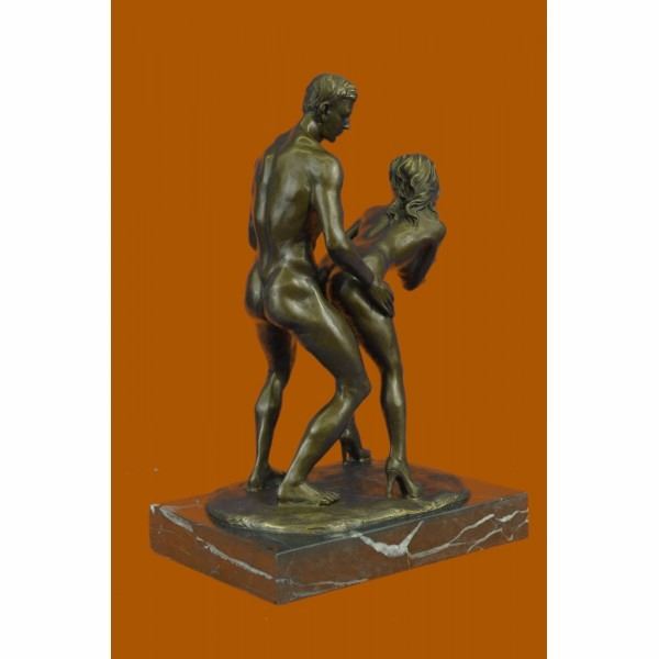 This erotic sculpture is an exquisite piece of a interracial couple in a very evocative pose. The female is sensually touching the front of her face as she standing and receiving pleasure from her lover. He grabs her back thighs while he is about to orgasm, grunting while she sexually moans and grinds slowly back and forth. The excitement running through their bodies is explosive. This piece is definitely a great conversation starter and would make a great gift for yourself or for someone who likes to be amused or appreciates nude sculptures. Despite its subject matter, this bronze sculpture is still a masterful and fine detailed execution, cast using the lost wax method, ensuring a highly detailed work of art that will be a treasure for years to come signed Mavchi Condition: This sculpture is in perfect condition. Bronze Dimensions with Marble Base:Height 12" x Width 8" Marble Dimensions: 8" X 6" Height without base: 11" Weight : 12 LBS Inventory : 31ST0938913