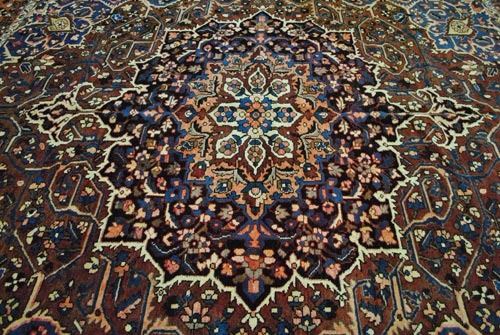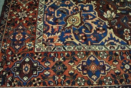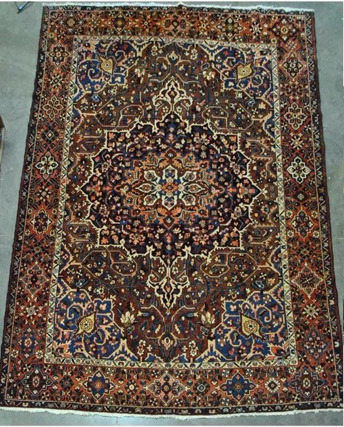 Extremely rare and fine quality 'ghahverokh' design Persian Bakhtiari rug. Made of the finest quality baby lamb's wool pile on cotton foundation, all natural vegetable dye, beautiful earth toned colors were used in creating this extremely detailed hand woven rug. With a highly detailed floral pattern (with elegant and long curvilinear tendrils) on a dark earth toned brown background; absolutely captivating large dual headed multi layered multi colored star shaped floral designed centerpiece medallion, deeply detailed crowned corners and an intricate floral trim. An amazing amount of time was spend on making this fascinating and thoroughly detailed authentic Persian Bakhtiari, with very small and tight knots. Country of origin: Iran. About Bakhtiari rugs: antique/semi antique Bakhtiari carpets, produced in the Zagros mountains of Iran, are one of the few types that can encompass nomadic tribal as well as urban Persian design. Many Bakhtiaris are in fact tribal pieces that rely upon a repertoire of abstract geometric and animal motives. But Bakhtiari weavers are also acclaimed for their ability to produce sophisticated medallion allover, and garden designs of classical Persian inspiration, although with an added vitality and boldness. The wool quality and rich color of Bakhtiari antique/semi antique rugs are also notable, whether they utilize an urban or more tribal design idiom. Size 12.2 X 9.8 feet.