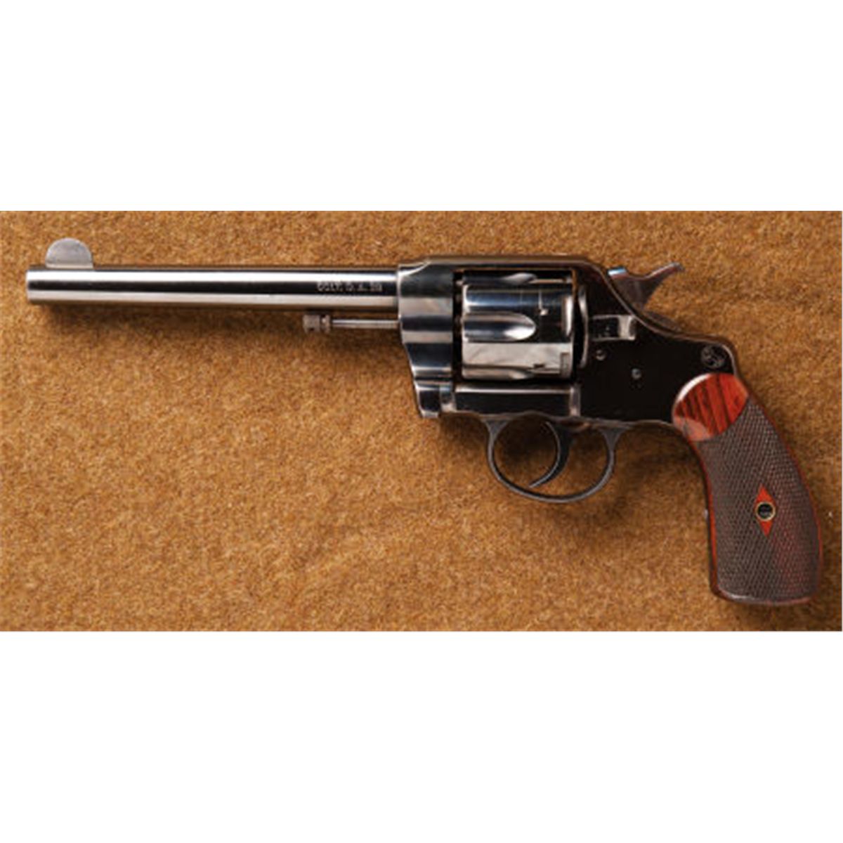 *Rare Colt Civilian U.S.M.C. Model 1905 Double Action Revolver. Serial no. 10016, .38 caliber, 6-inch barrel with standard address. Assembly number 88 on frame, crane, cylinder and cylinder release. Blued finish. Checkered and varnished walnut grips. Manufactured in 1905.Condition: Excellent to mint with some flaking on backstrap, tracking line on cylinder and minor wear to relief edges.