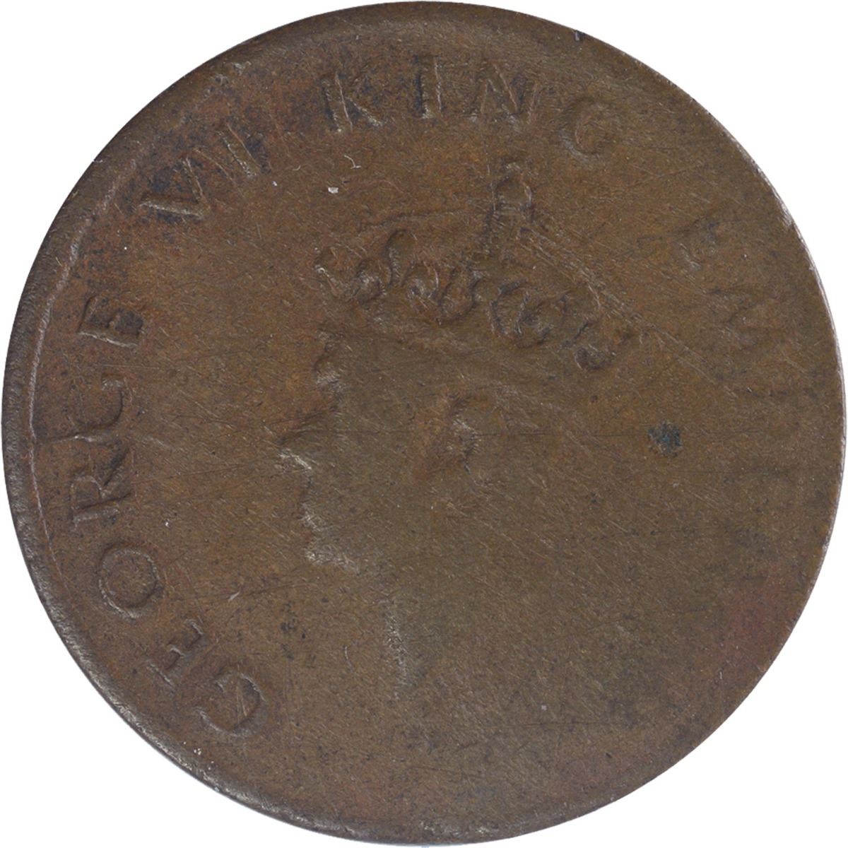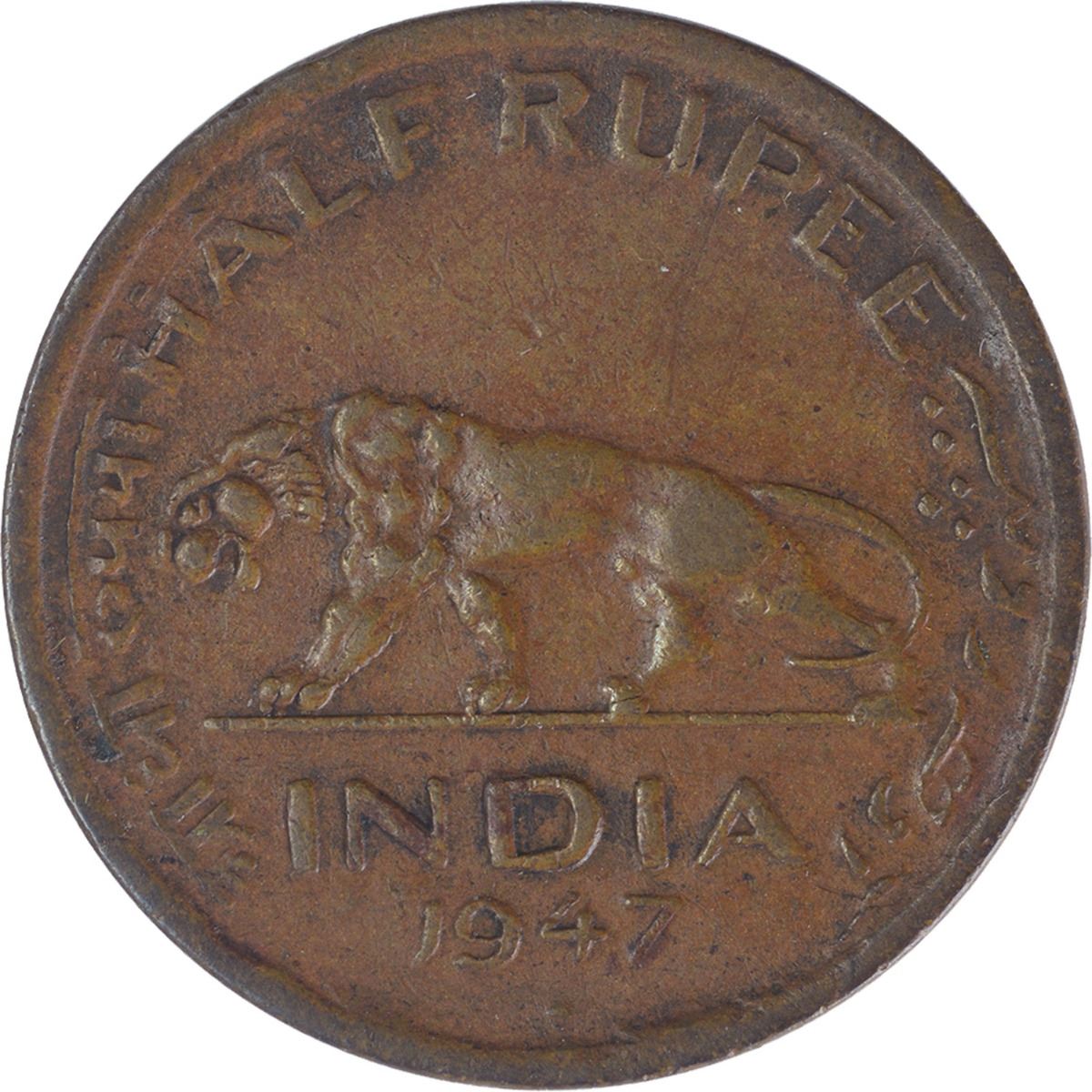 Rare Copper Half Rupee Coin of King George VI of Bombay Mint of 1947.