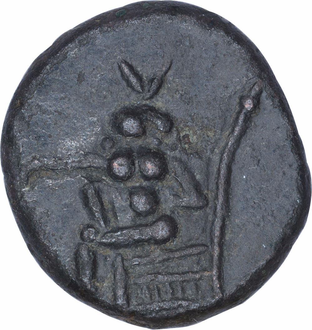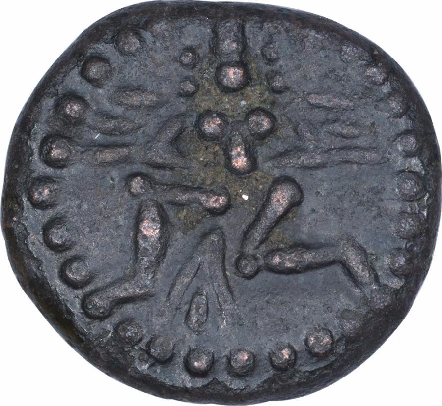 Madurai Nayakas,Copper Kasu,Obv: garuda sitting with folded hands,Rev:goddess lakshmiseatedonthronefacing left, 1.90g, 13.06mm,about extremely fine,Rare.