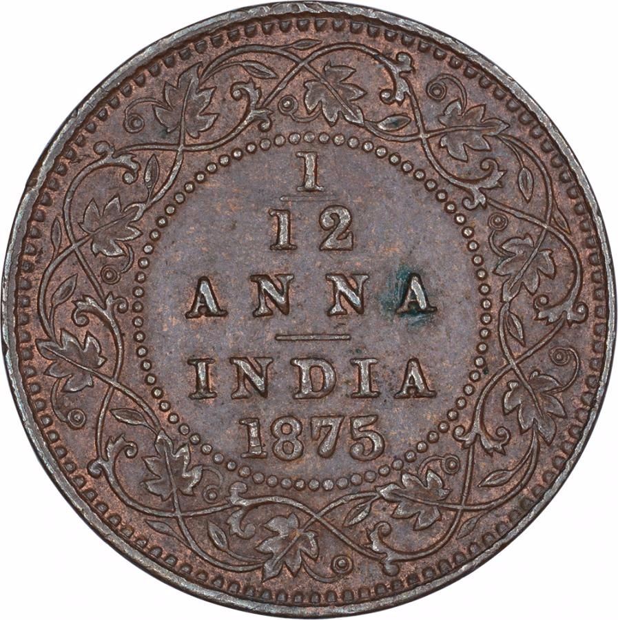 Rare Copper One Twelfth Anna Coin of Victoria Queen of Calcutta Mint of 1875.