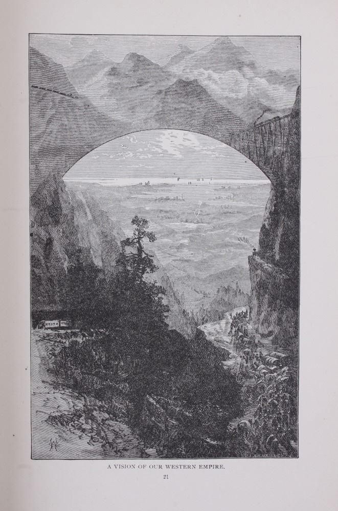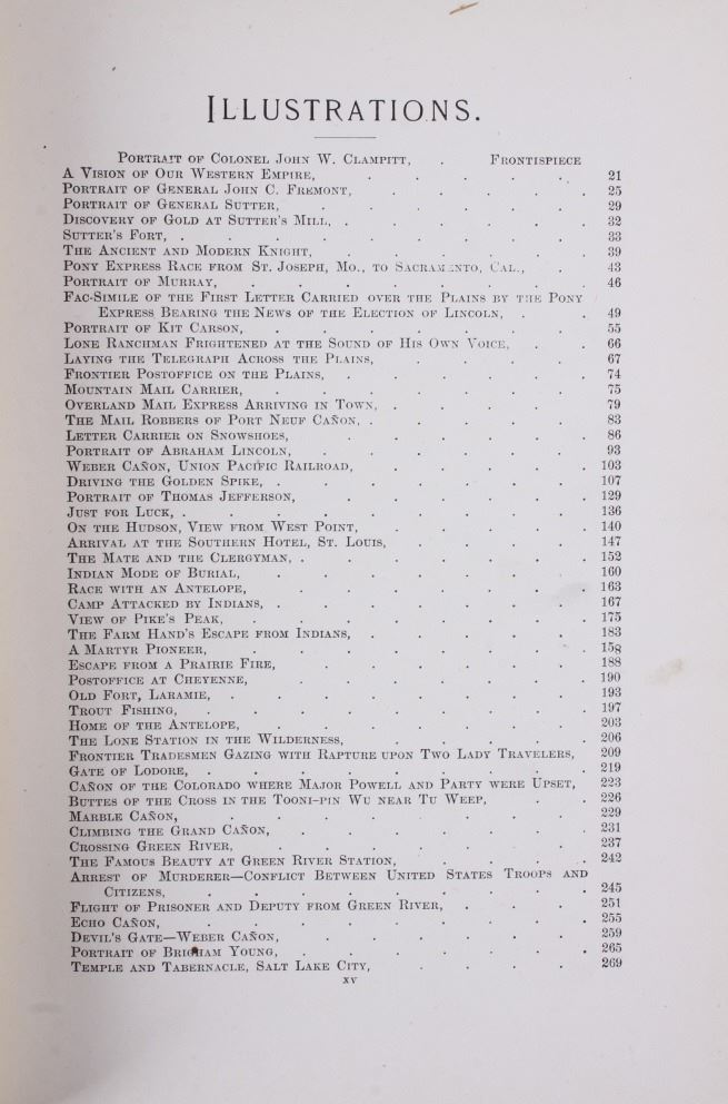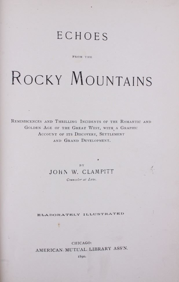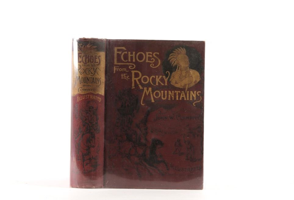 Included in this lot we have a hardcover, illustrated copy of Echoes from the Rocky Mountains by John W. Clampitt. The full title reads "Echoes from the Rocky Mountains Reminiscences and Thrilling Incidents of the Romantic and Golden Age of the Great West, with a graphic account of its discovery, settlement, and grand development". The book was published in 1890 by American Mutual Library Ass'n, Chicago, and copyright in 1888 by John W. Clampitt. It is elaborately illustrated, and included a portrait of the author next to the title page. The book features accounts and stories from a wide array of sources. The piece covers topics such as Yellowstone, Yosemite, the Pony Express, along with many others. The book shows great condition for is covered by a clear protective sleeve. The book measures 9 3/4" tall by 7 1/4" wide and 2" thick.