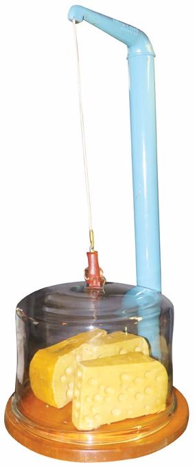 Rare Cheese Safe Counter Balance Display Case. Original glass dome. Edward A Smith, Oshkosh, WI. Comes with faux cheese blocks. 17 X 41 X 24 inches.