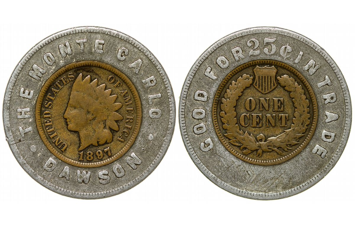 c1898 This is a rare bi-metal GF 25c at the Monte Carlo in Dawson. - HKA#65743