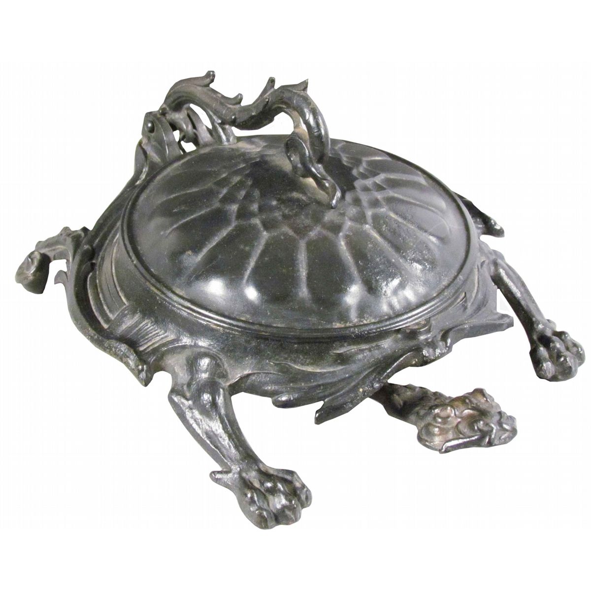 Rare Detailed Version Turtle Spittoon. Original metal pan. Excellent original condition. 9 X 5 1/2 X 11 1/2 inches.