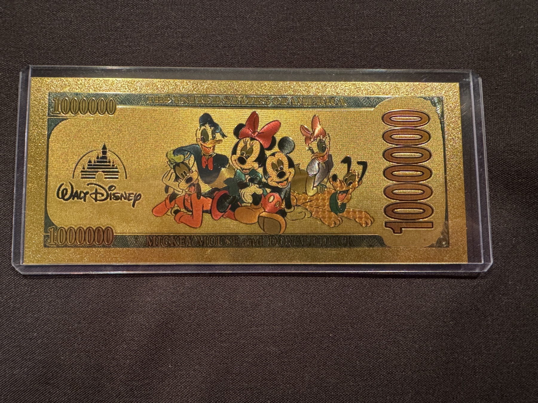Rare Disney Pluto Gold Foil .999999 - 24K Gold Note In Protective Holder - Mint Condition