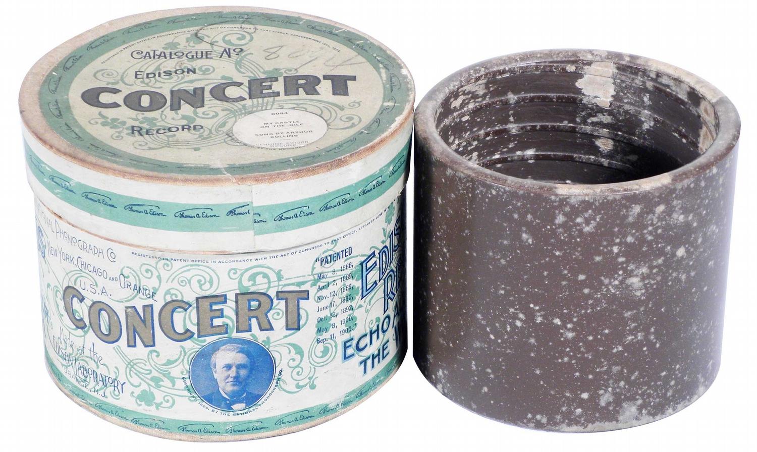 Edison Records Concert Cylinder for rare machine. Catalogue No 8094. Last patent date Sept 11, 1900. Measure 6 inch diameter X 4 3/4 inches tall.