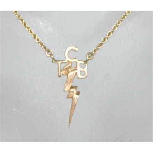 Isn?t this fabulous! A must have for any avid Elvis Presley collector, we are presenting a one of a kind custom made 14K gold Pendant with the initials T C B with center lighting bolt representing Elvis Presley?s motto ?Taking Care of Business in a Flash?! The 14K gold Pendant measures 1 ¼ of an inch long by ½ of an inch wide and is attached to a beautiful 24 inch long 14K gold Robe Chain; securing with a barrel type closure and safety bar. Both the Pendant and the Necklace are both marked 14K, very well made and perfect for any Elvis collector!