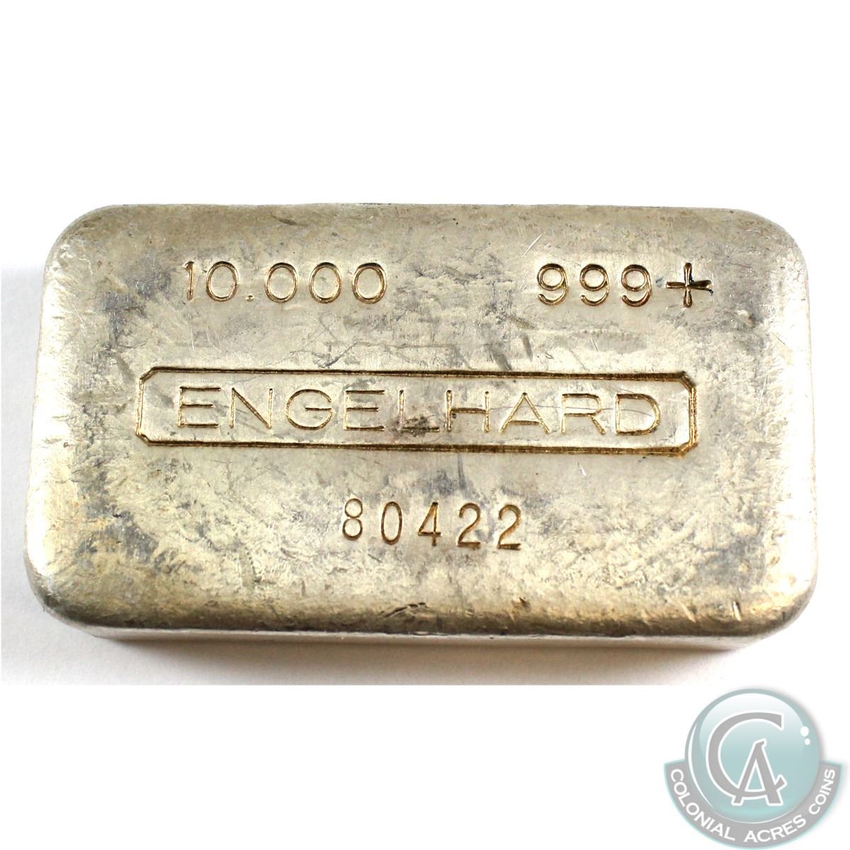 Rare! Engelhard 10oz Fine Silver Bar '3rd Series' with 5-digit # (Tax Exempt) Serial # 80422. 3rd series in 5-digit variation with the Weight class and purity spaced further apart than other examples.