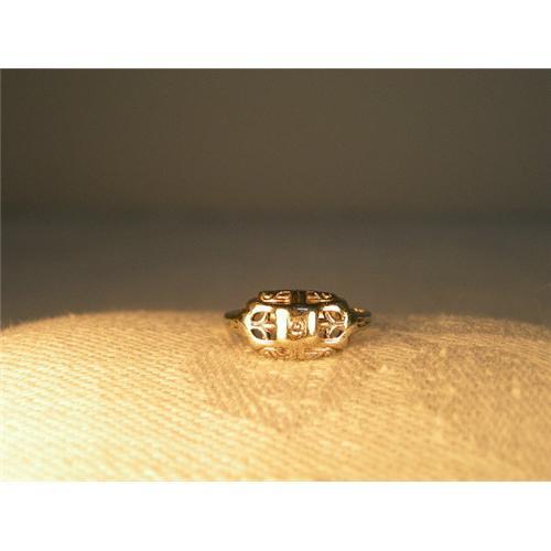 <tr><td>Title:Rare Estate 14K WG Gold Filigree Diamond Ring</td></tr>