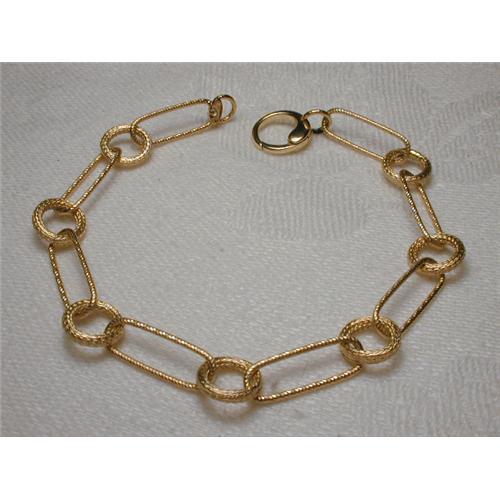 You are looking at a rare estate 14K yellow solid gold designer bracelet. This lovely piece features oblong and round solid yellow gold links. The bracelet measures 7.5 inches long by .25 of an inch wide. It weighs 7.1 grams. It is in mint condition.