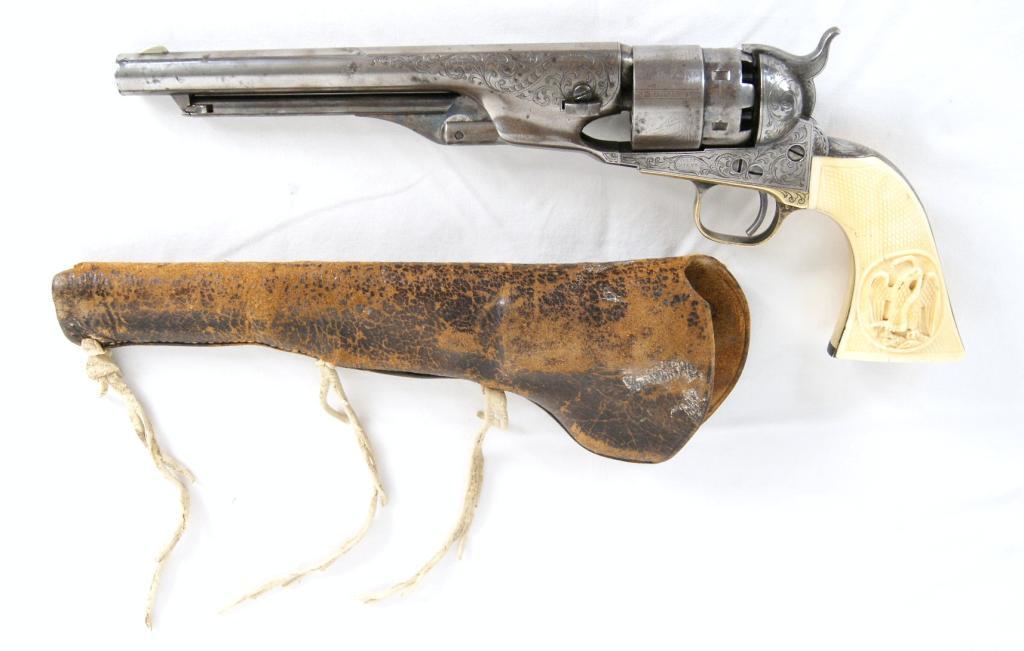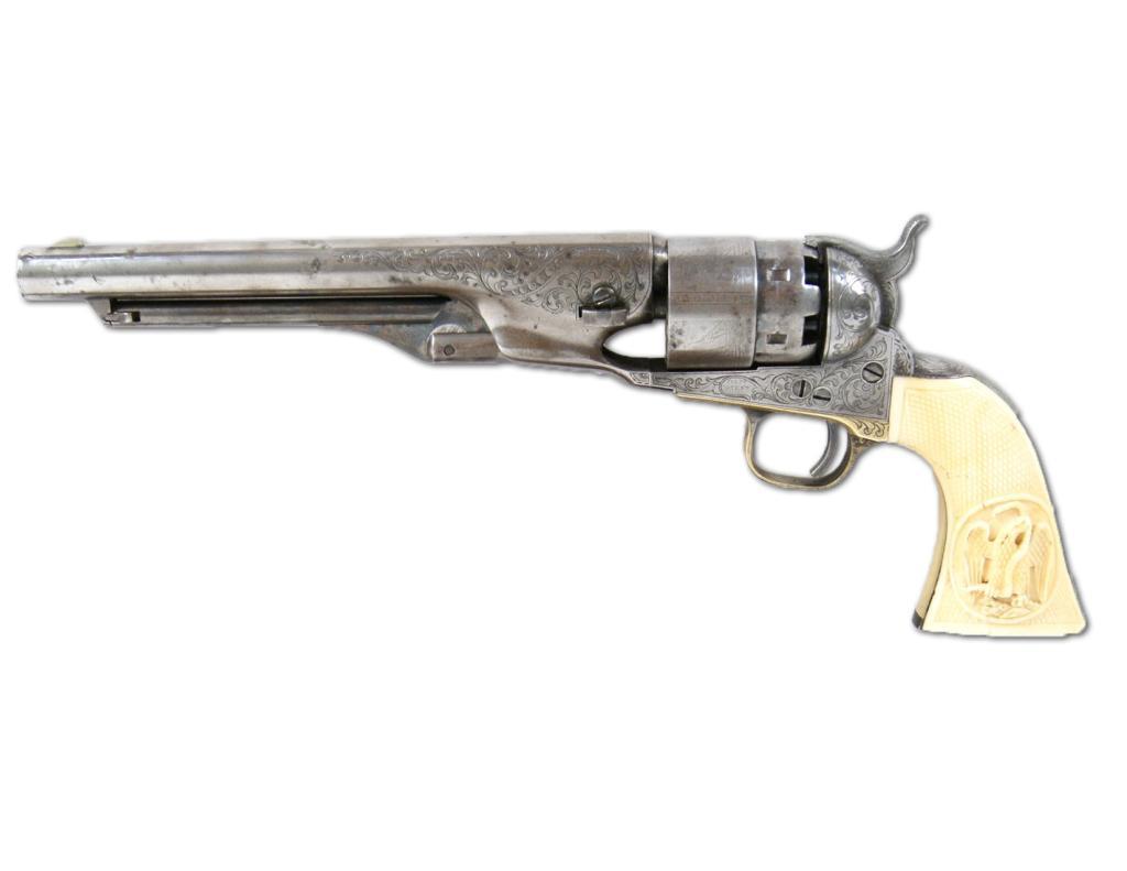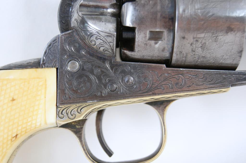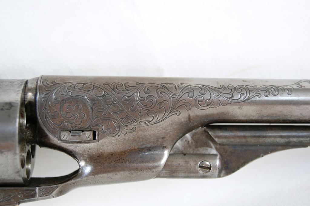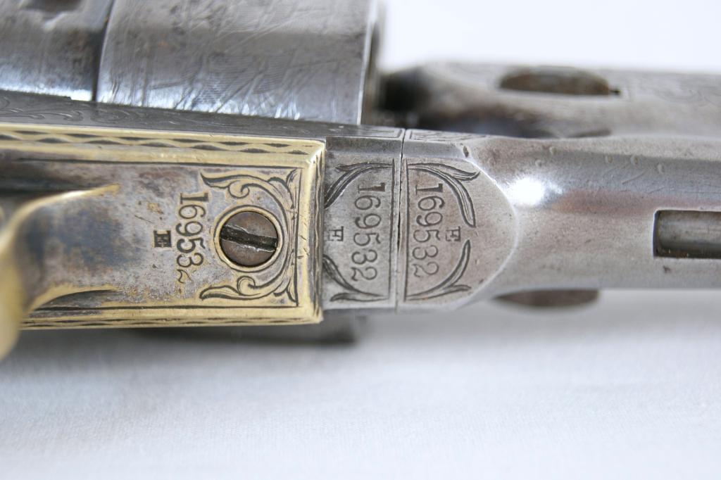 Rare Factory Engraved Colt Mo. 1860 -Gustave Young Colt Mo. 1860 Army - Gustave Young signature wolf head motif engraved on the hammer. Serial 169532 E.