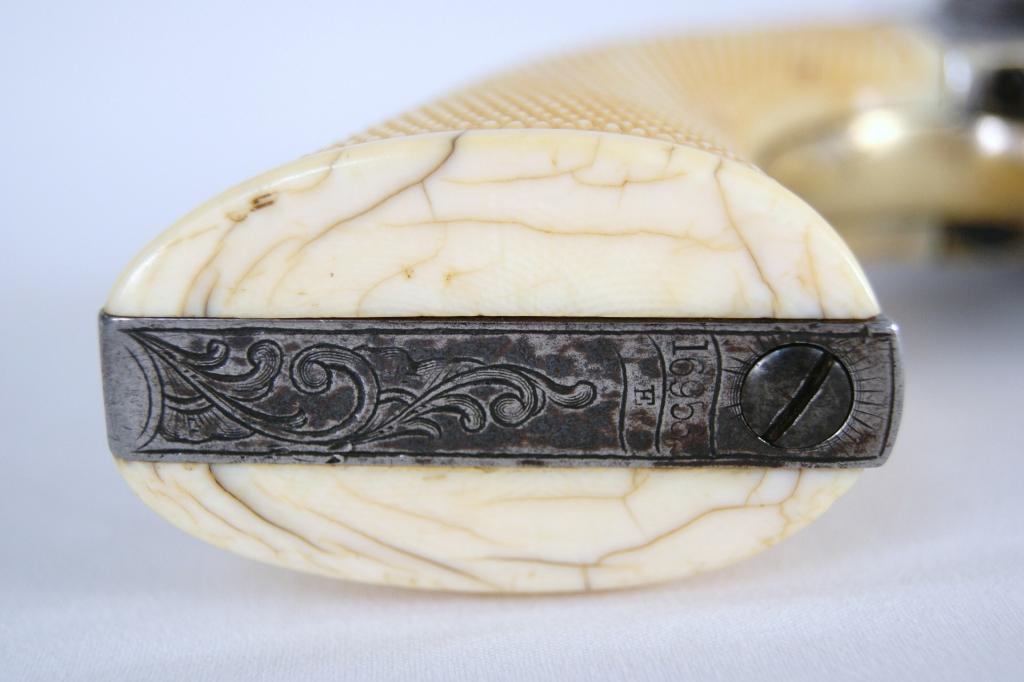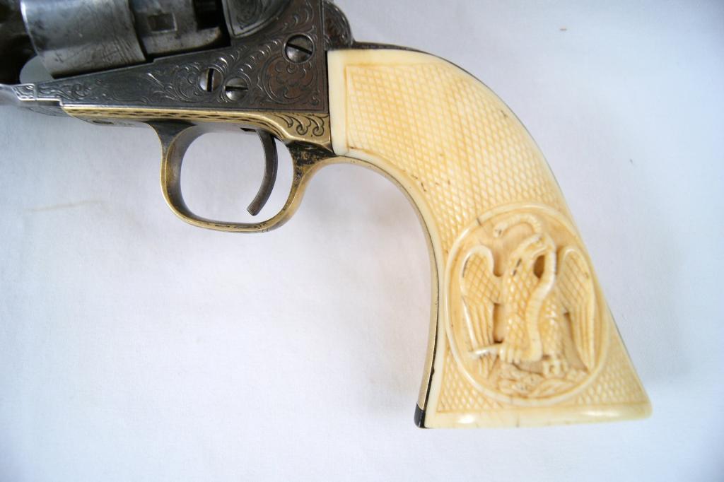 Checkered Ivory Grips with carved American Eagle & Snake. Includes Original Mexican holster.