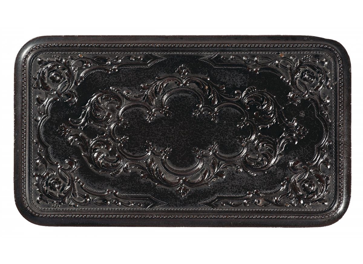 Condition: Very fine. The revolver retains 75% plus bright original high polish blue finish with the balance a smooth brown patina. The grips are also excellent with some mild high edge wear, a few mild handling marks and retaining most of the varnish. Mechanically excellent. The case is very fine showing some scattered chipping along the edges, high point wear on the lining and a hinge with a replacement pin.