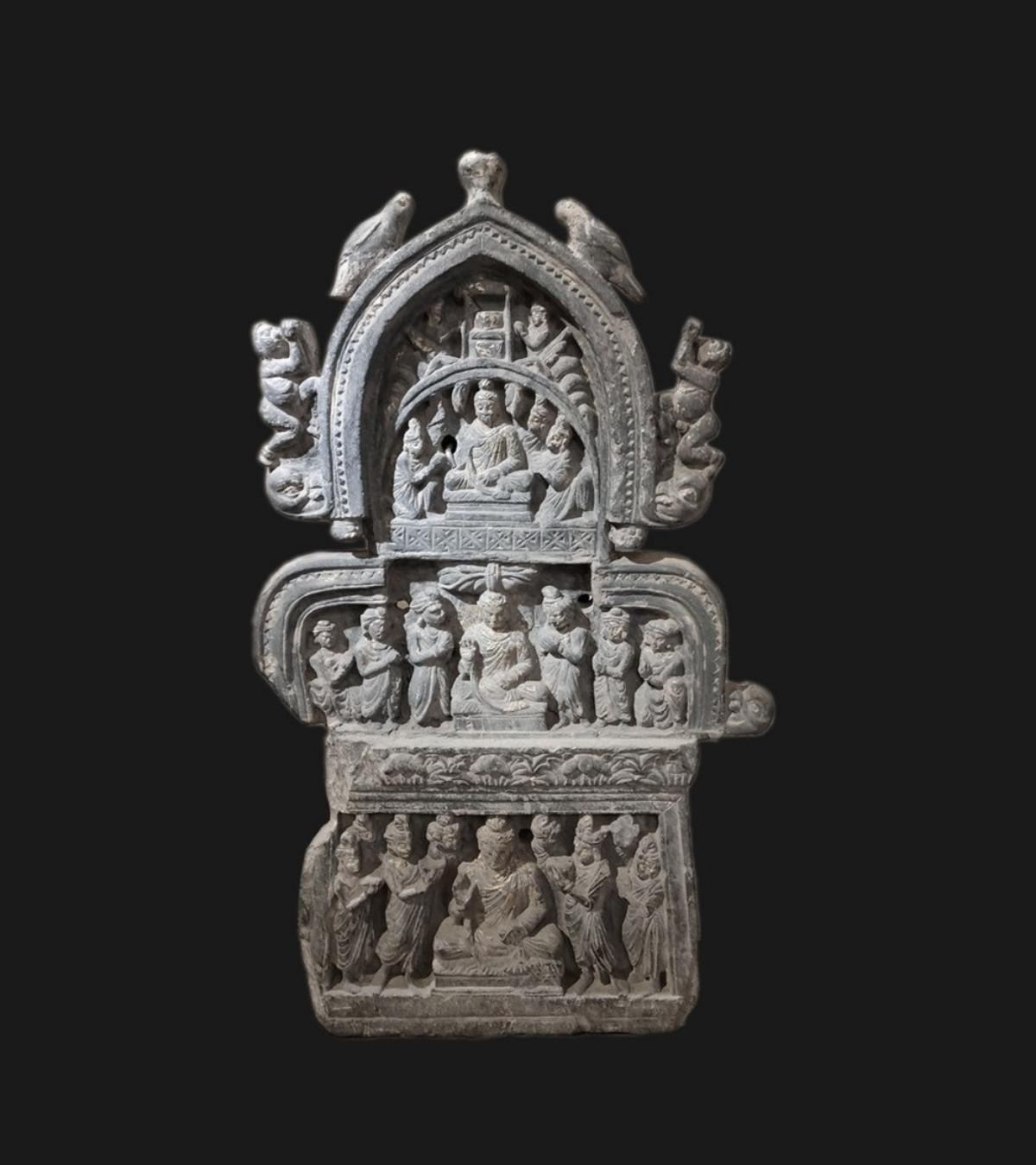 Gandhara sculptures refer to a distinctive style of ancient Buddhist art that flourished in the Gandhara region, located in present-day Pakistan and Afghanistan, during the first few centuries CE. These sculptures are a remarkable fusion of Hellenistic and Indian artistic traditions, reflecting the cultural exchange between the Greco-Roman world and the Indian subcontinent.Gandhara sculptures primarily depict Buddhist themes, particularly the life and teachings of the Buddha. The statues often depict the Buddha in human form, sitting or standing, in postures such as the meditative pose or the teaching gesture. These sculptures exhibit a strong influence from the classical Greek art of the Hellenistic period, characterized by realistic human forms, idealized facial features, and flowing drapery. These sculptures were not limited to religious contexts alone; they were also used to adorn monastic complexes, stupas, and other architectural structures. Today, the Gandhara sculptures are regarded as important historical and artistic treasures. Many of these sculptures can be found in museums around the world, including the Peshawar Museum in Pakistan, the National Museum in Delhi, India, and the British Museum in London. They serve as a tangible link to a fascinating period of cultural exchange and artistic fusion between the East and the West.Material: Grey SchistSize: 67.5 cm