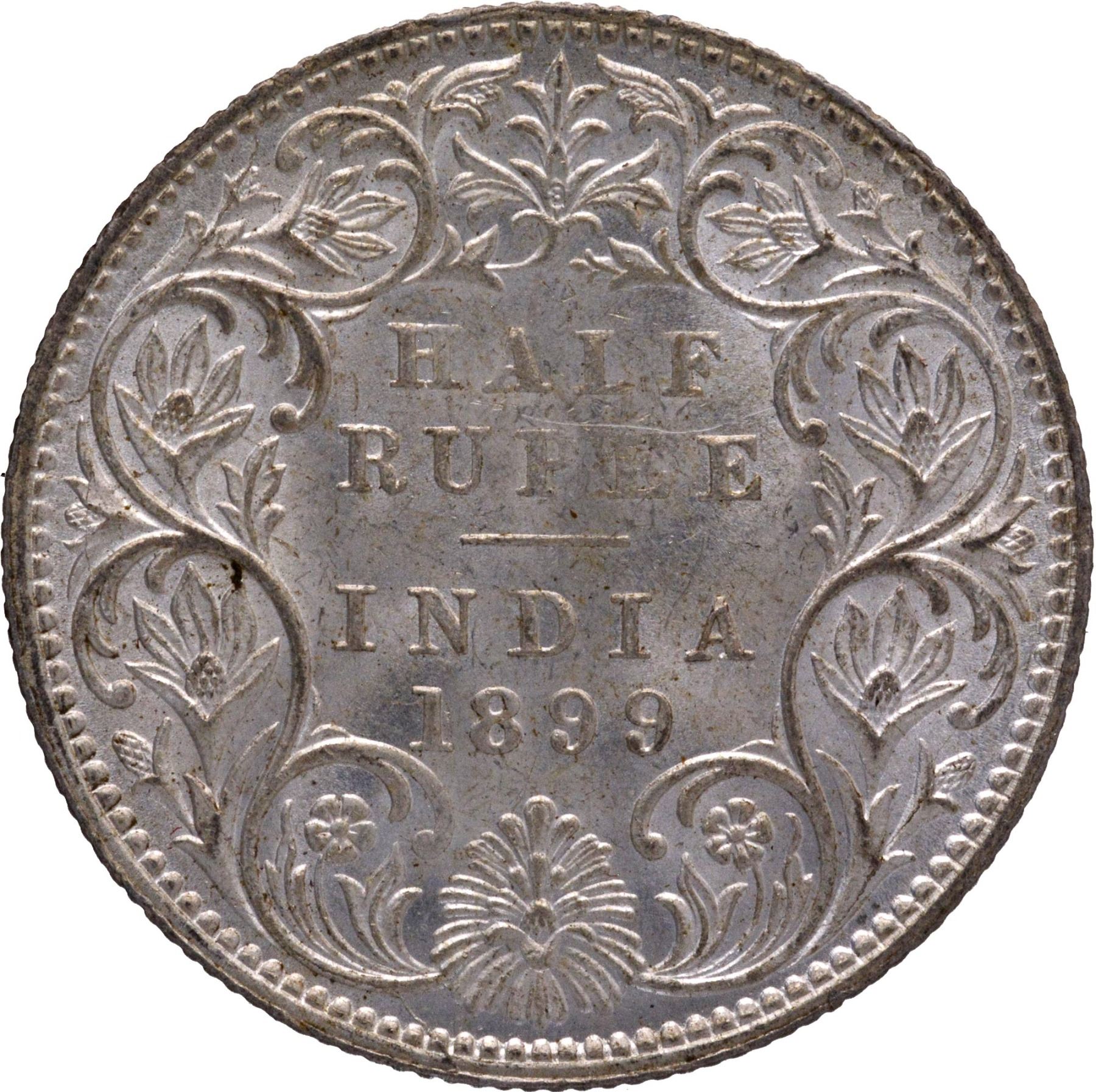 1899, Victoria Empress, Silver ½ Rupee, Bombay Mint, A/I/B incused inverted, (PR # 307/GK # 662), superb features, Gem UNC, Rare in this grade.