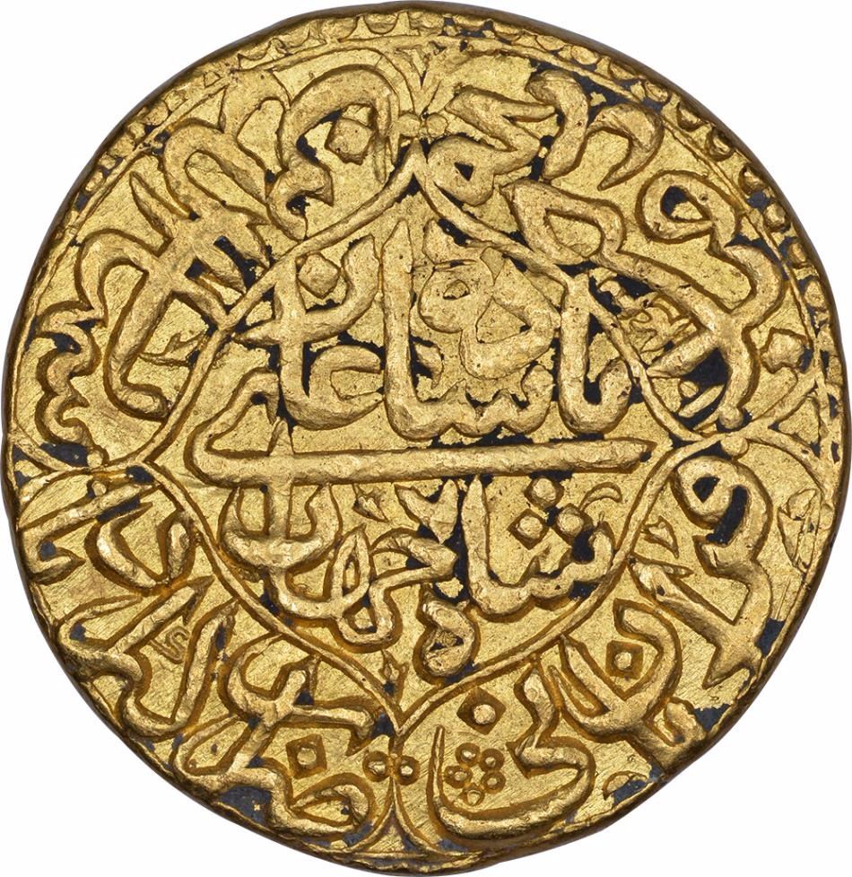 Shah Jahan, Akbarabad Mint, Gold Mohur, AH 1043, Obv: kalima shahada in quatrefoil, around four khalifa's name, Rev: shahjahan badshah ghazi in quatrefoil, shihabuddin muhammad saheb-e-qiran sani mint name, 10.9g, 23.63mm, (KM # 258.1), about extremely fine, Rare.
