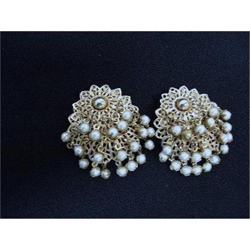 BEAUTIFUL GOLD TONE PEARL, CLIP-ON EARRINGS, MADE IN FILIGREE STYLE WITH 20 TINY PEARLS ATTACHED TO FINE CHAIN WHICH ALLOWED EACH PEARL TO MOVE AND SHOW IT'S BEAUTY, IT TRULLY IS BEAUTIFUL - VERY GOOD QUALITY WITH EXCELLENT DETAIL - as per images, Excellent condition,Measuring about 1 3/4 long,US Buyer to pay 7.00 for shipping plus insurance.THANKS.