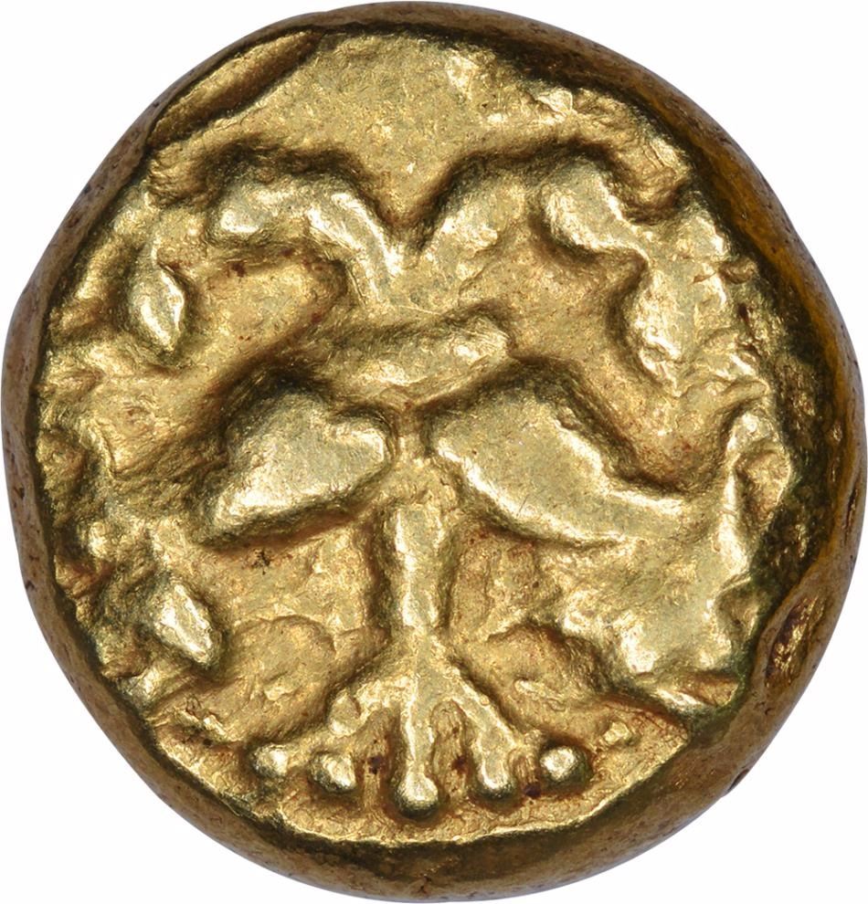 Keladi Nayakas,Gold Varaha, Ship Type,Obv: gandaberunda holding some animal in its beak,Rev: a ship with sails clearly seen:fish are also seen in the water,3.45g, 10.38mm,about very fine, Rare.The Reverse has been deciphered now in the article of Gopal and Siddanagowdar in SINS VOLUME XIX printed in 2009 and may be considered as an important coin. It has a ship with the spread sails on it at reverse and well known mythical bird of this region "Gandaberunda" on obverse. It is a well known fact that the Keladi Nayakas had flourishing maritime trade with many other countries. They were also known as the masters of the coastal areas of Karnataka adjoining their Kingdom. Hence the ship with the sails depicted on the reverse of this coin justifies all such coins fromKeladi Dynasty.The name of the ship of the Keladi Chief was "Iswari Mahamayi".