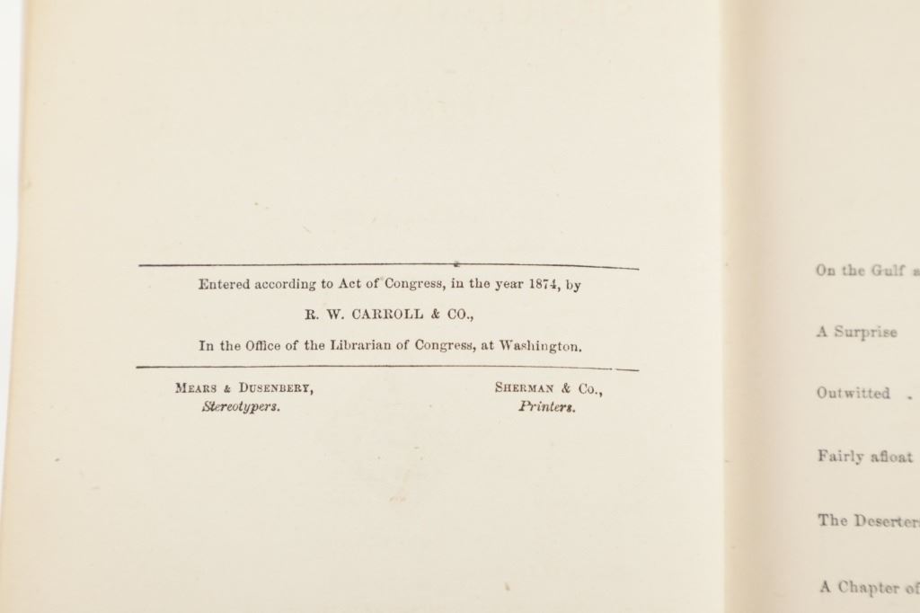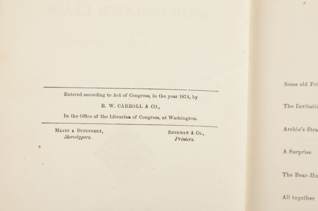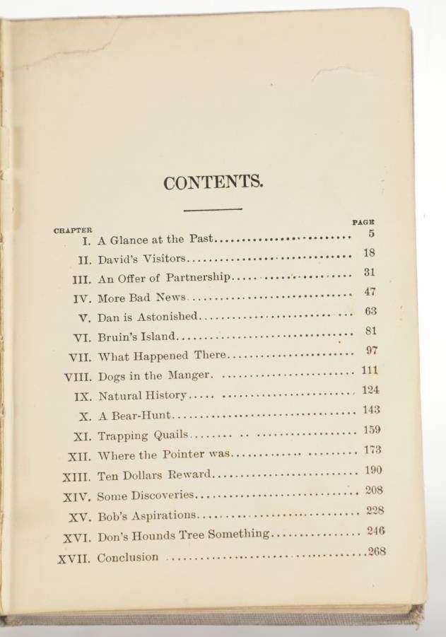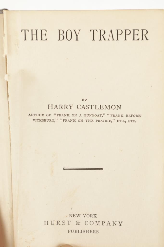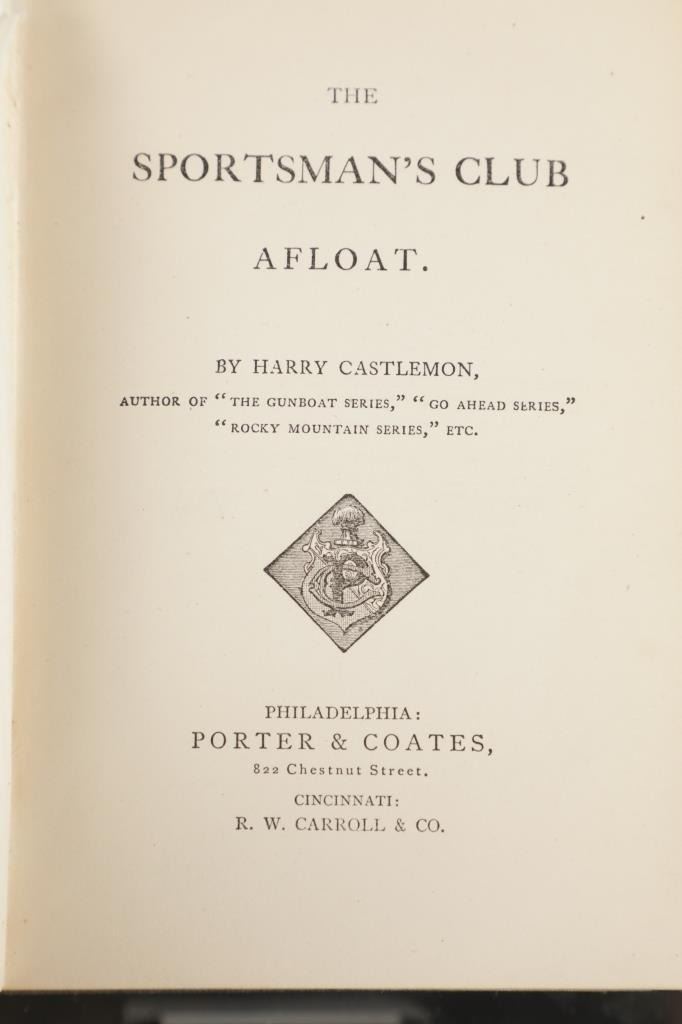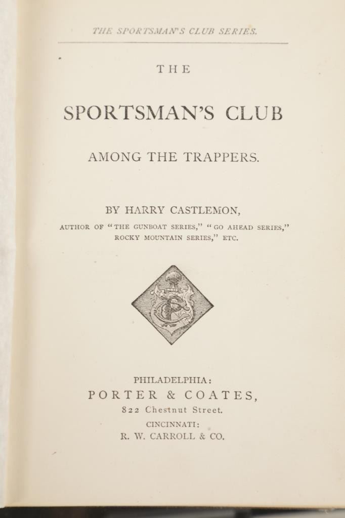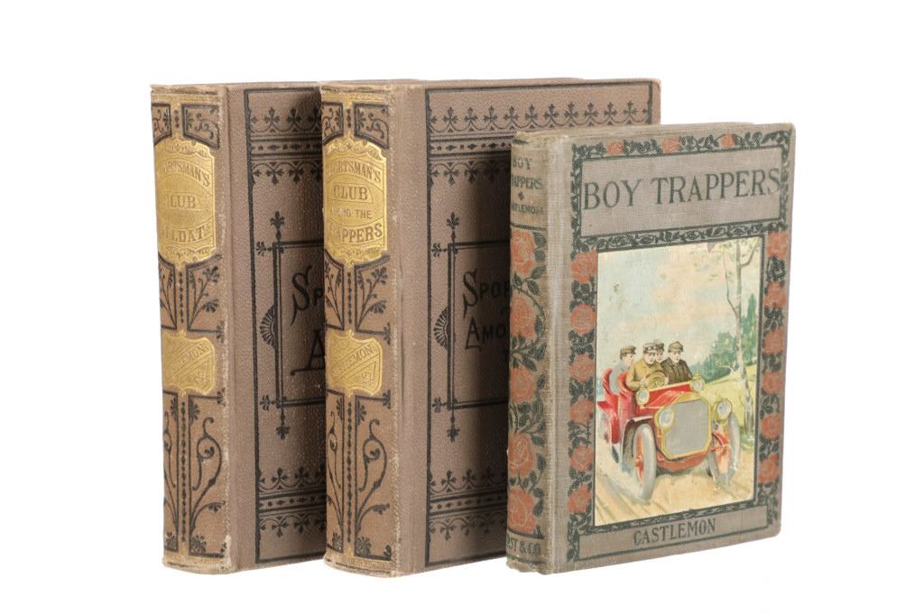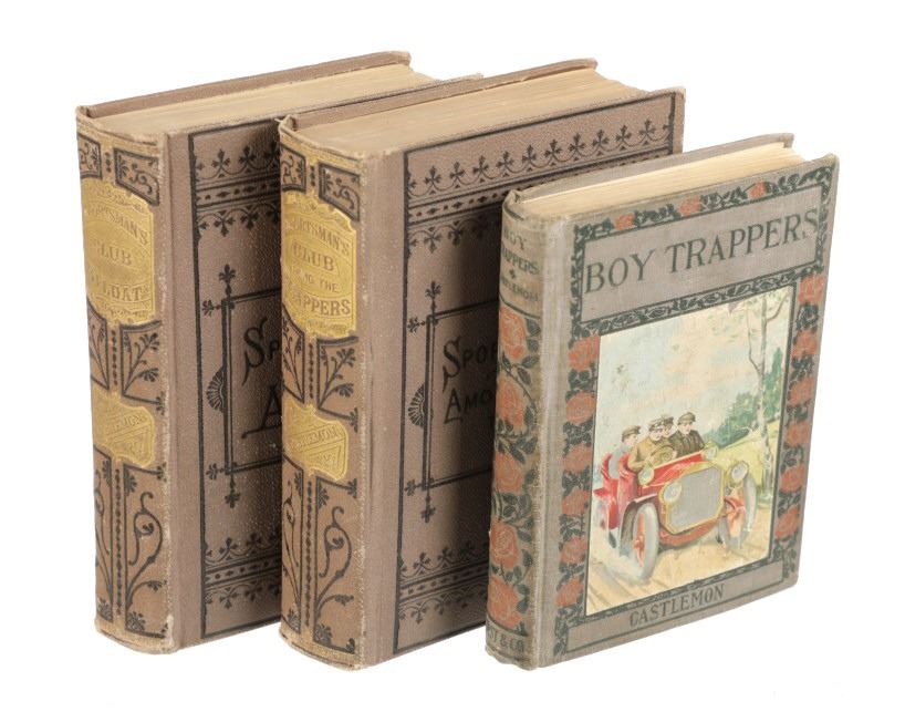 This lot includes two (2) books from the rare "Sportsman's Club Series" and one (1) book from the rare "Boy Trapper Series" by Charles Austin Fosdick (1842-1915), better known by his nom de plume Harry Castlemon, a prolific writer of juvenile stories and novels, intended mainly for boys. Castlemon became the most-read author for boys in the post-Civil War era, the golden age of children's literature. "The Boy Trapper, or, How Dave Filled the Order" 1878, written from the point of view of a boy character, George Ackerman. "The Sportsman's Club Afloat" 1874, and "The Sportman's Club Among the Trappers" 1874. Castlemon often drew on his experiences serving in the Union Navy during the U.S. Civil War for inspiration.