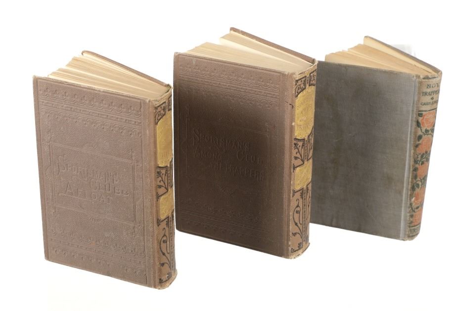 These illustrated hardcovered books are in good overall conditions, gold gilt on covers and spines still fairly visible for the Sportman's Club books with pebble finish covers and stamped titling on both front and rear covers, some spine separation noted for all three books. Boy Trapper has a pictorial onlay on the floral designed grey cloth bound hardcover front cover. Intact pages with slight marring damage noted within all three consisting of bent or tattered edges. Age tanning and slight foxing also noted throughout. No other obvious marring noted. Sportman's Club book each measure 4.75"W x 6.75"L x 1.25"D approximately; Boy Trapper measures 4.25"W x 6.25"L x .75"D approximately.