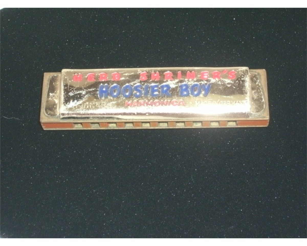 Herb Shriner's Hoosier Boy Harmonica. Made in Germany. Measures 4" in length. Measurements are approximate.