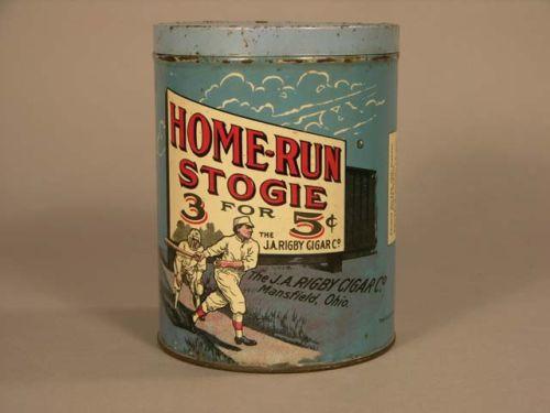 Rare Home Run stogie cigar tin, very good cond. 5.5"t x 4.5"d.