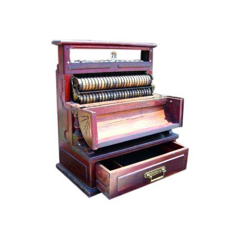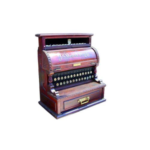 Hopkins and Robinson Cash Register. Extremely Rare Victorian designed cash register by the Hopkins and Robinson Mfg. Co. of Louisville, Kentucky. In addition to their highly desirable change makers, H. R. made a much smaller number of wooden cash registers in a similar Victorian design in the late 1800s. This is the only known example with a personalized lid on its carved walnut cabinet. It is in original condition but has an aging wood split in the lid which has been repaired.