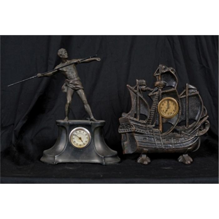 Nice Grouped Lot-RARE Iron Ship Clock and Figural Gladiator Metal Clock- 400-700