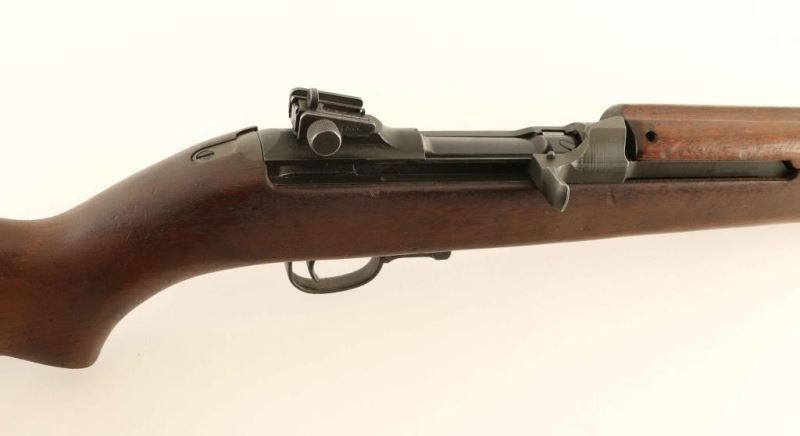 SN: 1785325 Rare arsenal rebuilt U.S. military magazine fed semi-automatic service rifle chambered in .30 Carbine, manufactured circa 1943. Irwin-Pederson only produced approximately 150,000 rifles before the Ordnance Department canceled their contract, making them the rarest of all the M1 Carbines. Features a parkerized finish, 18" ROCK-OLA barrel dated 3-43, shrouded blade front sight, adjustable sliding rear aperture sight, wide barrel band with bayonet lug, two-rivet hand guard with wide groove, push button safety, push button magazine release, no magazine, smooth trigger, flat bolt and smooth walnut pistol grip shoulder stock with low-wood forend, oval cut oiler slot & metal buttplate. Markings: Front sight - "IPN" Barrel Band - "KI" Rear Sight - "I.R. CO." Stock - "W.R.A./G.H.D." & [crossed cannons] Safety - "EPB" and the Magazine Catch - underlined "M". Rifle retains approximately 90% of it's parkerized finish showing only light wear and some pin prick pitting under the finish on the left side of the receiver along the stock line. Action is smooth, the bore is excellent and the wood stock is very good. Condition is NRA Very Good ***C&R Firearm***