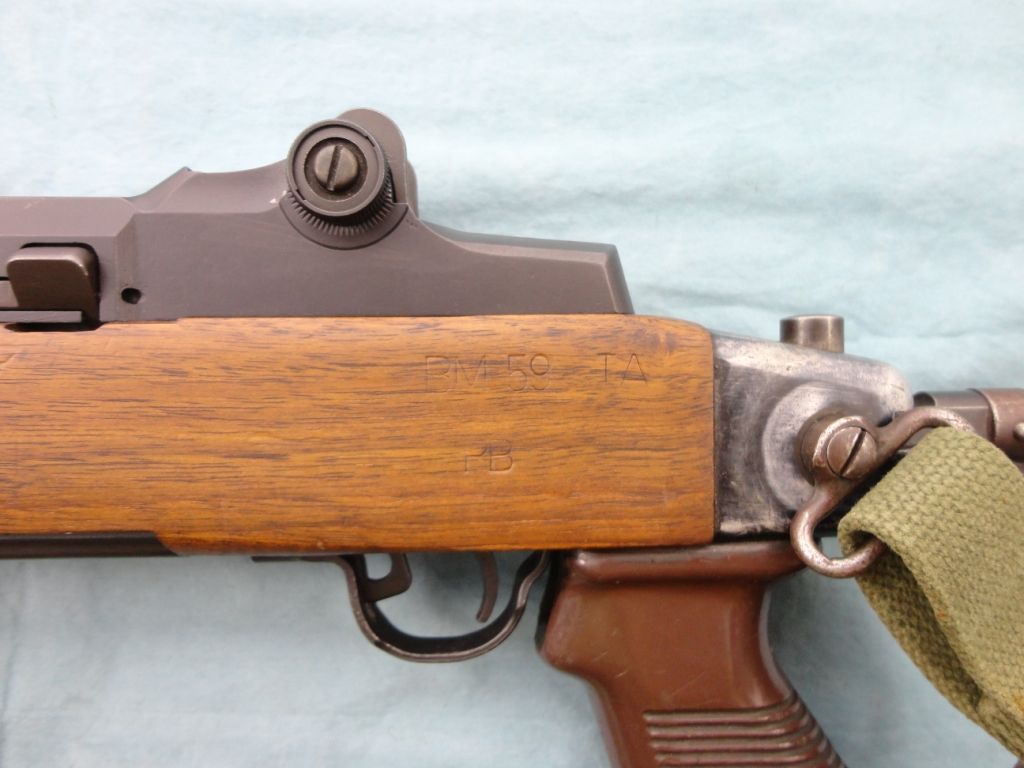 #3630734; 30-06. Mfg. by Springfield Armory. has shortened bbl. w/ beretta flash hider. Specialized wooden & metal folding stock. marked "BM59 TA PB" the TA for "Trooper Alpine" & the PB "Pretro Beretta". Stock also shows holes which are for a type of folding bipod. Top hand guard has crack from receiver to bbl. band. Bbl band marked "BMB". Gun is in very good overall condition.