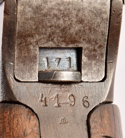 Rare Italian Navy flatside. Bore is very good plus. Action works perfectly. Frame, floorplate takedown tab all are different numbers. Receiver bolt, sight and firing pin-guide all match. Frame has a re-rust blue. Receiver has original blue. Gun has the Italian Navy “DV” and “AV” marks