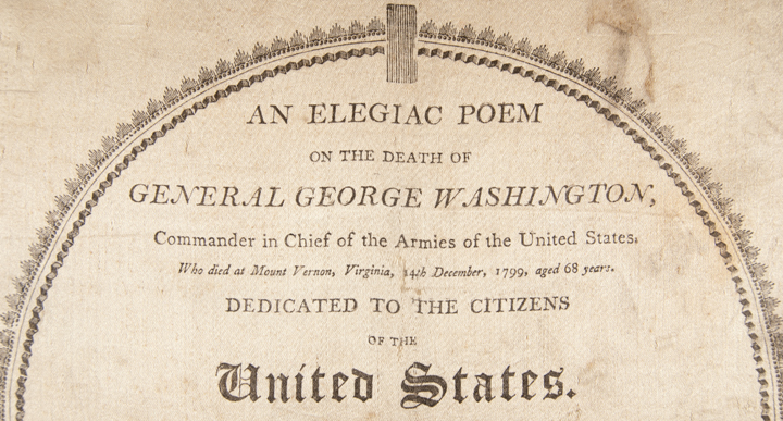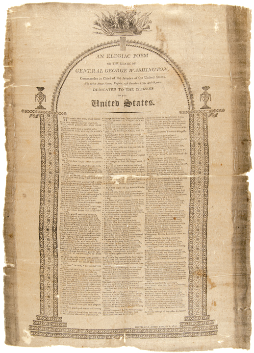 Extremely Rare January 1st 1800 “An Elegiac Poem on the Death of George Washington Commander in Chief of the Armies of the United States.” Listed in “Threads” Item 18