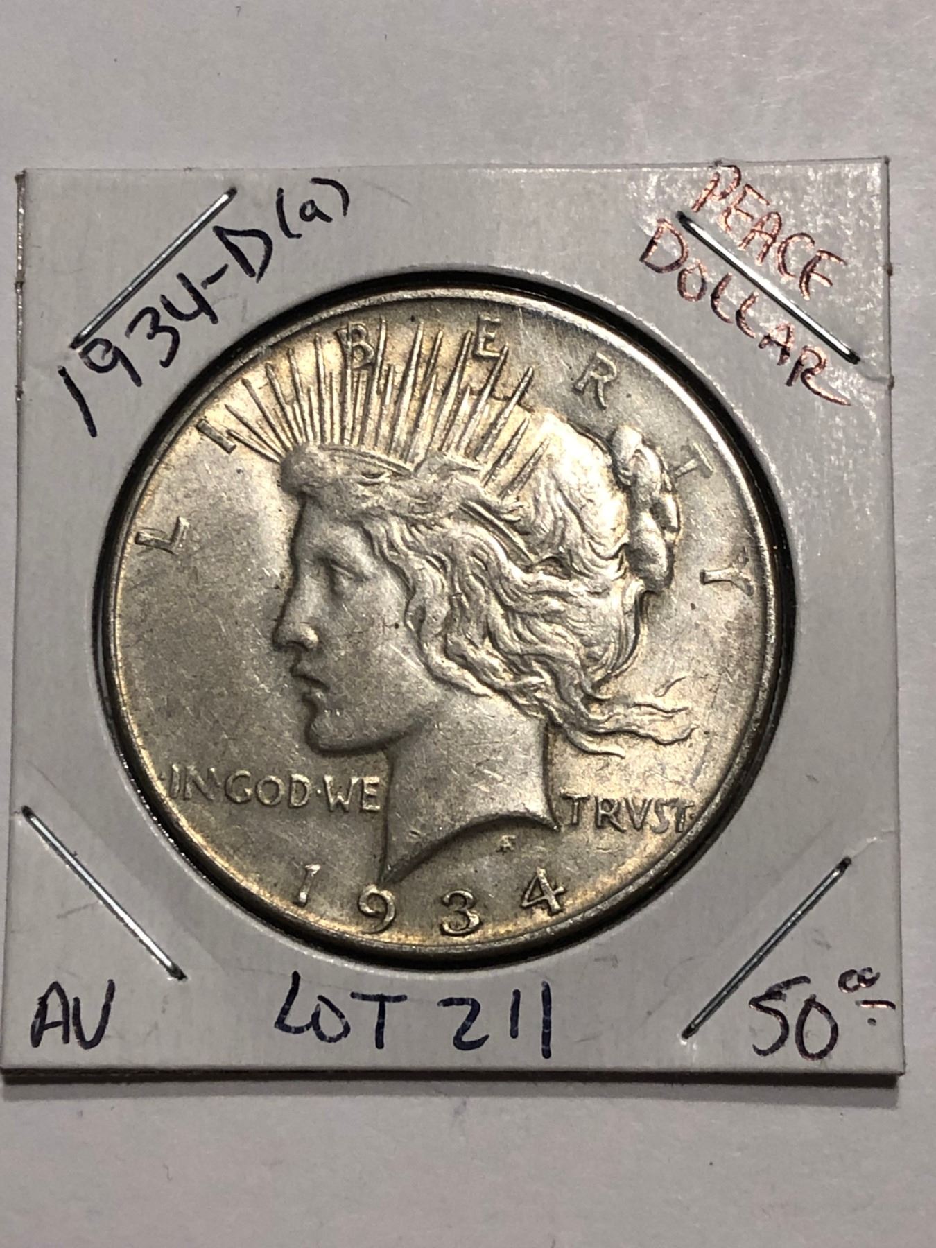 Rare Key Date 1934 D Silver Peace Dollar AU High Grade Nice Early US Coin