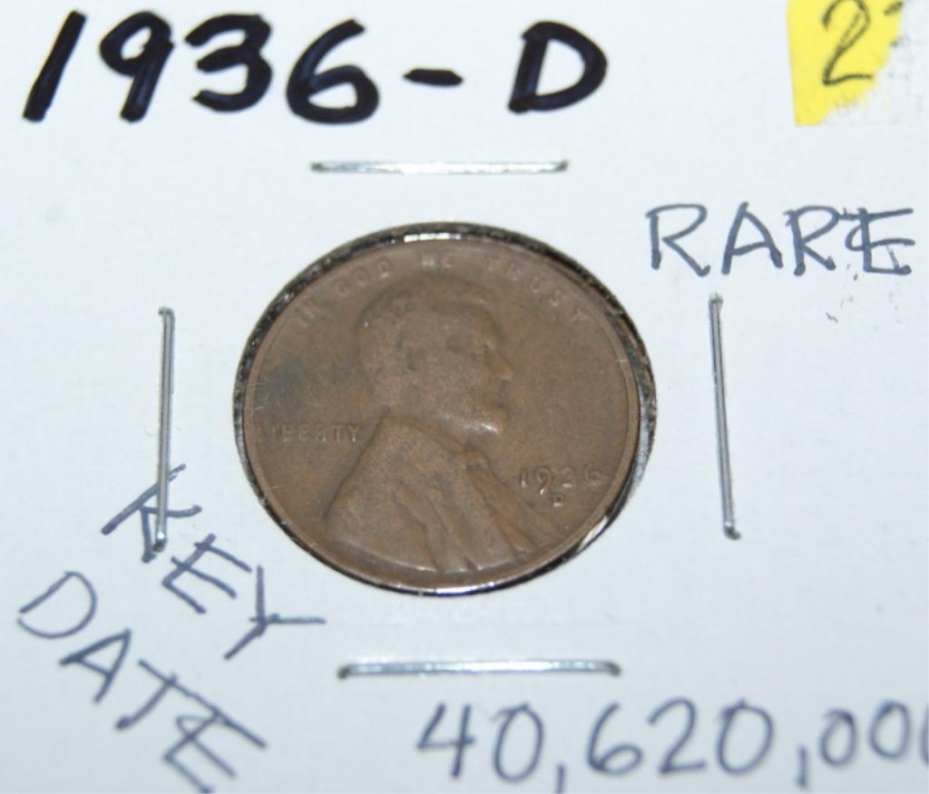 Rare, Key Date 1936-D Lincoln Wheat Penny