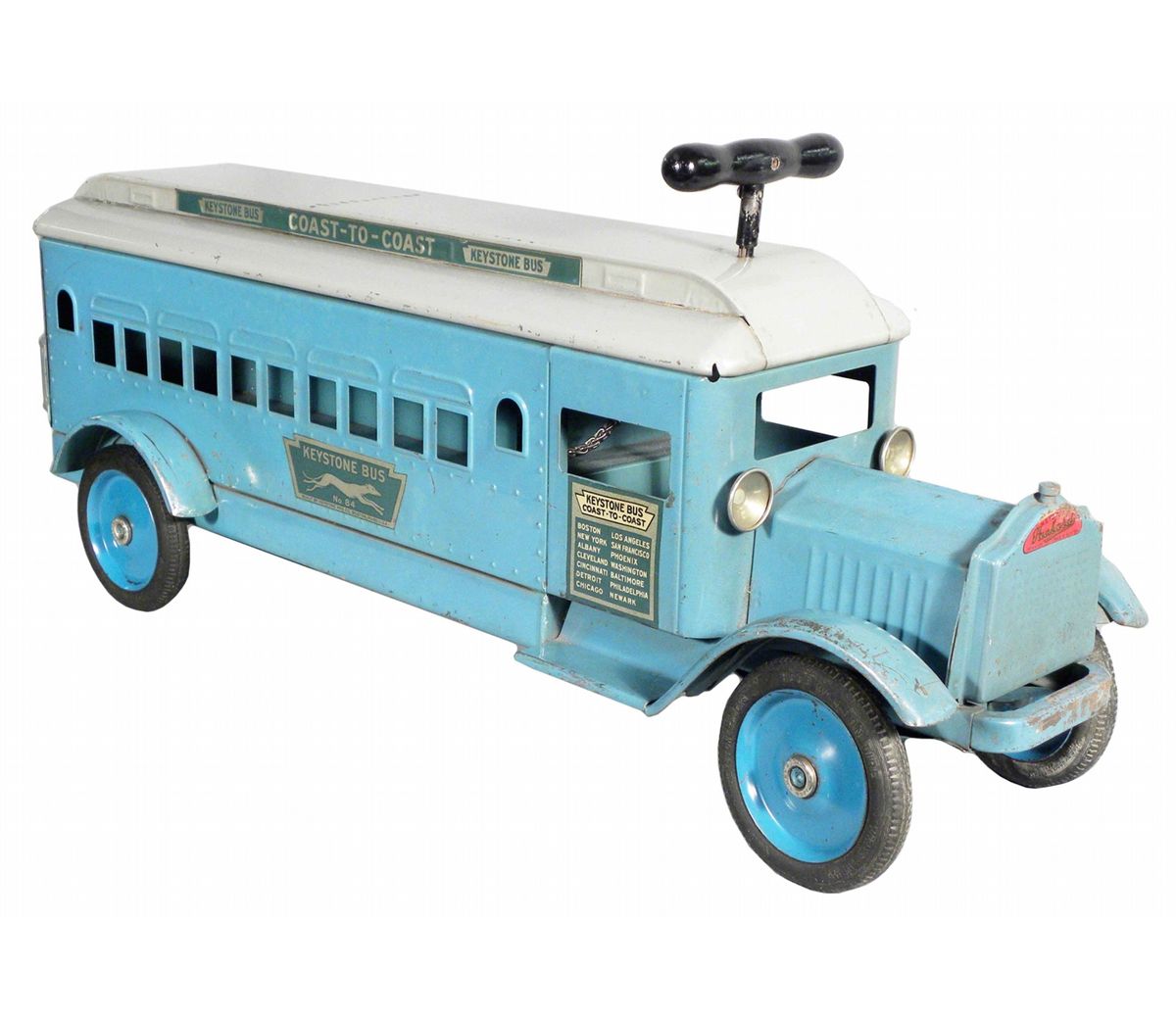 Extremely Rare Toy Keystone No. 84 Ride 'Em Greyhound Coast-to-Coast Bus. Keystone Mfg. Boston, Mass. All original, near mint condition. Comes with original box, the only one known.