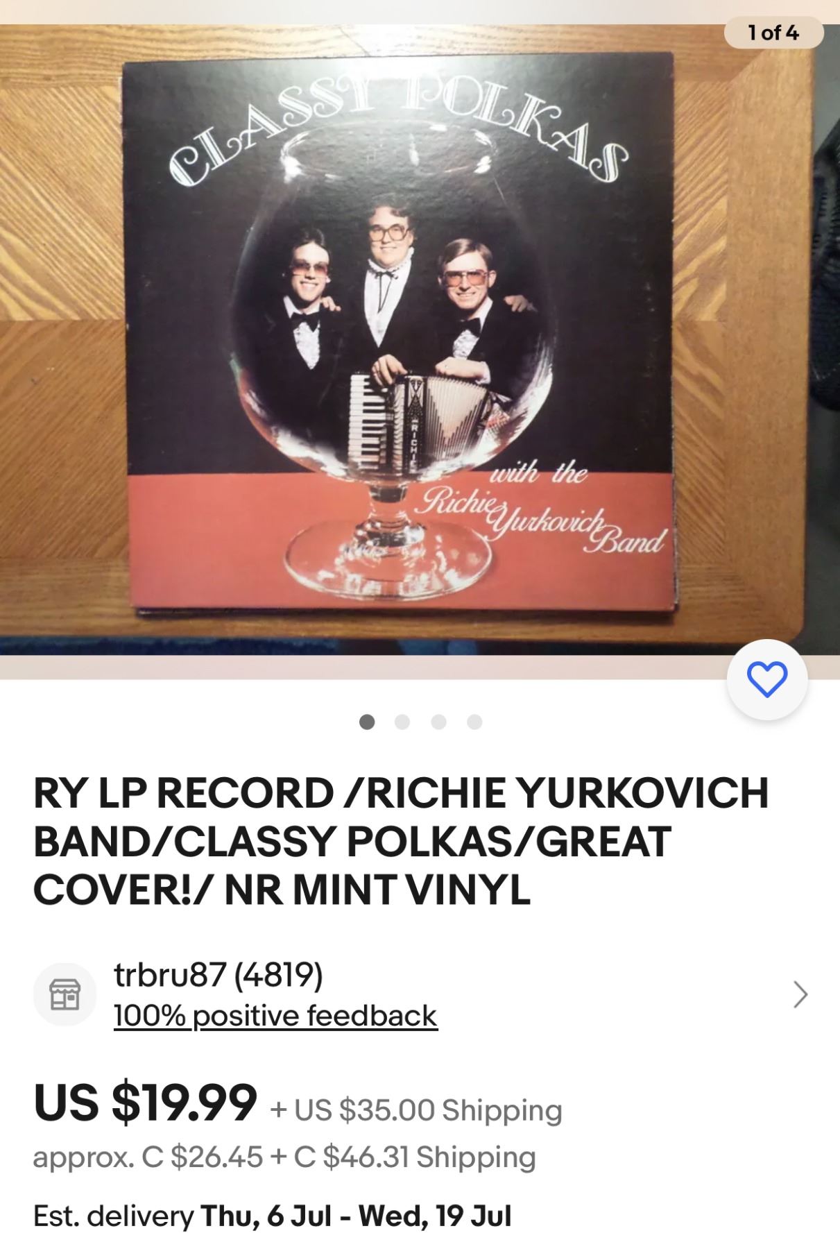 Rare LP Record by Ritchie Yurkovich "Classy Polkas"