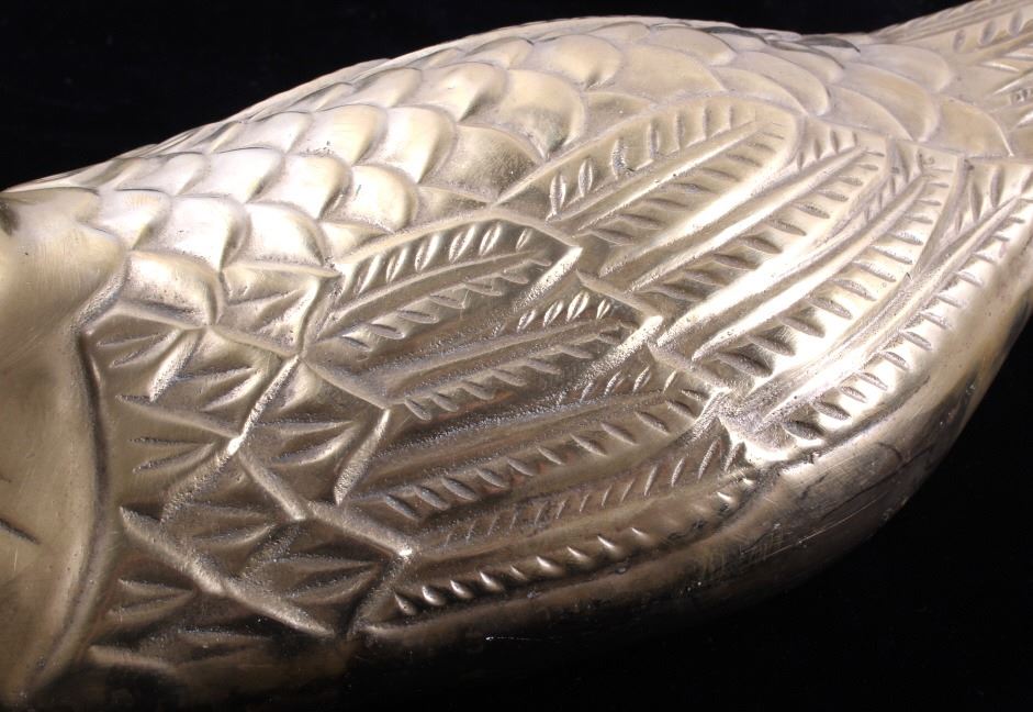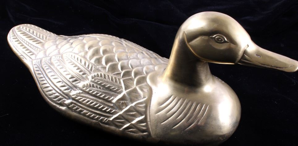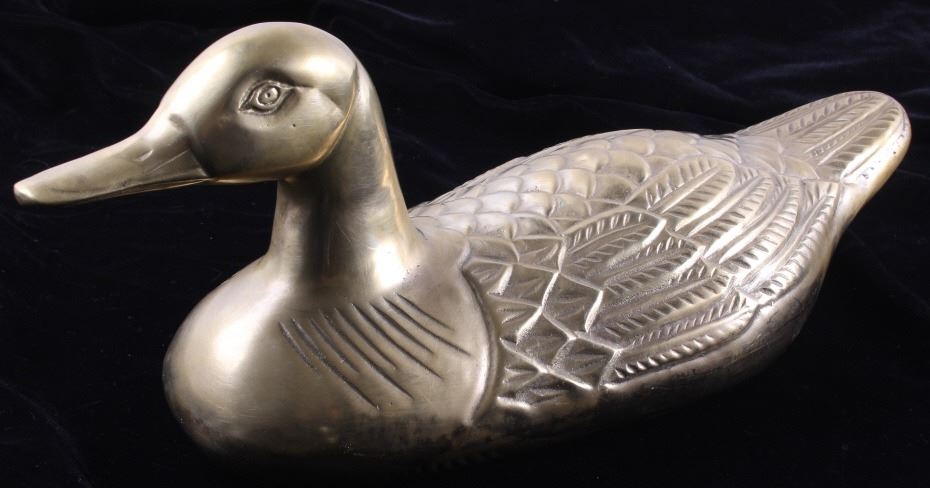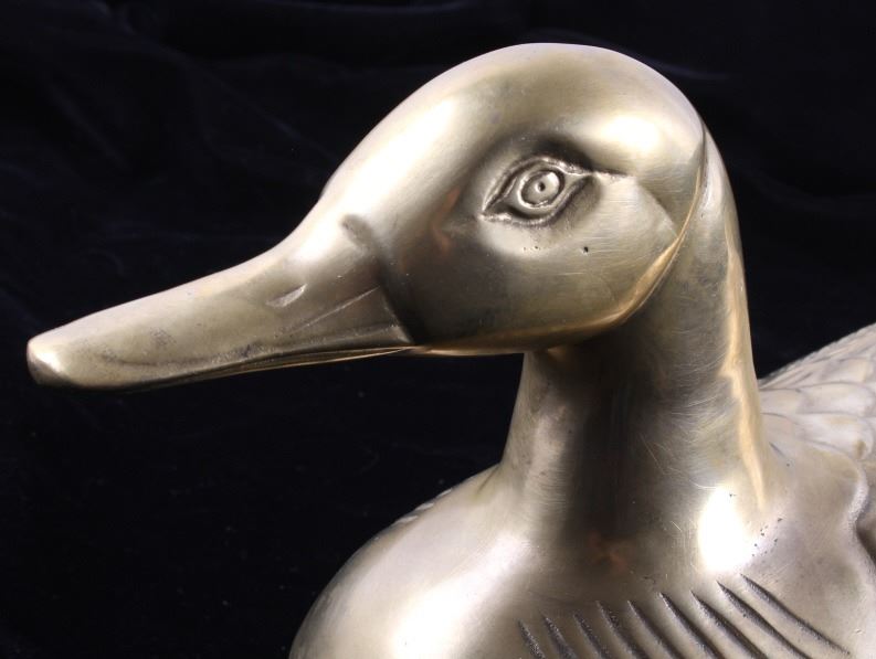 This highly detailed brass duck decoy is a uncommon sight. The duck features a brass construction that has been polished and formed into a duck. It is a high quality heavy cast that shows well. The duck is in good condition. It measures 16 1/2" L x 6 3/4" W x 7" H