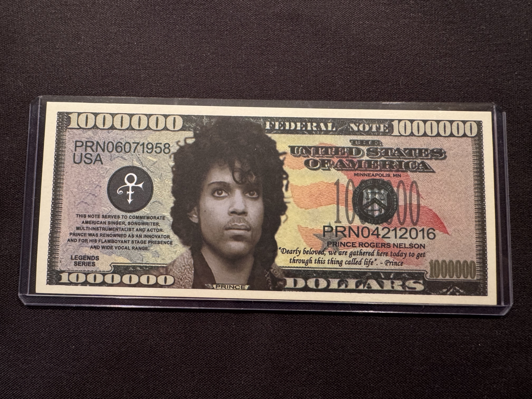 Rare Limited Edition Prince Rogers Nelson One Million Dollar Bill In Protective Holder - Mint Condition