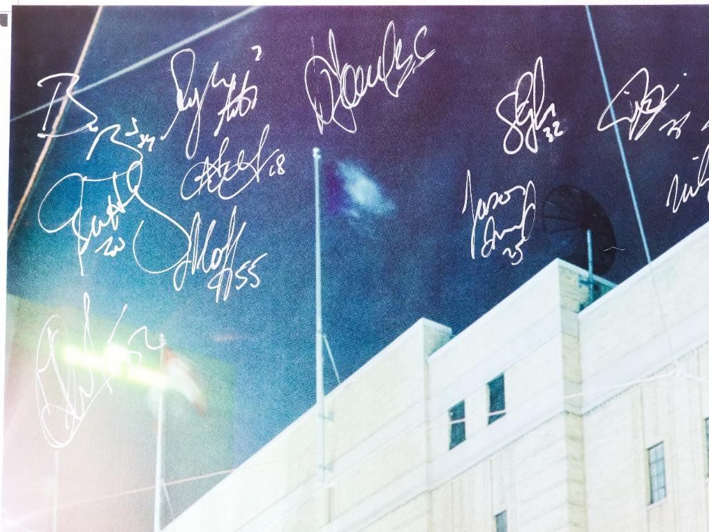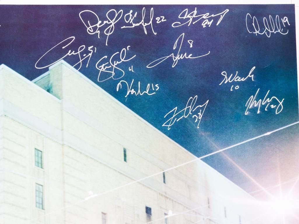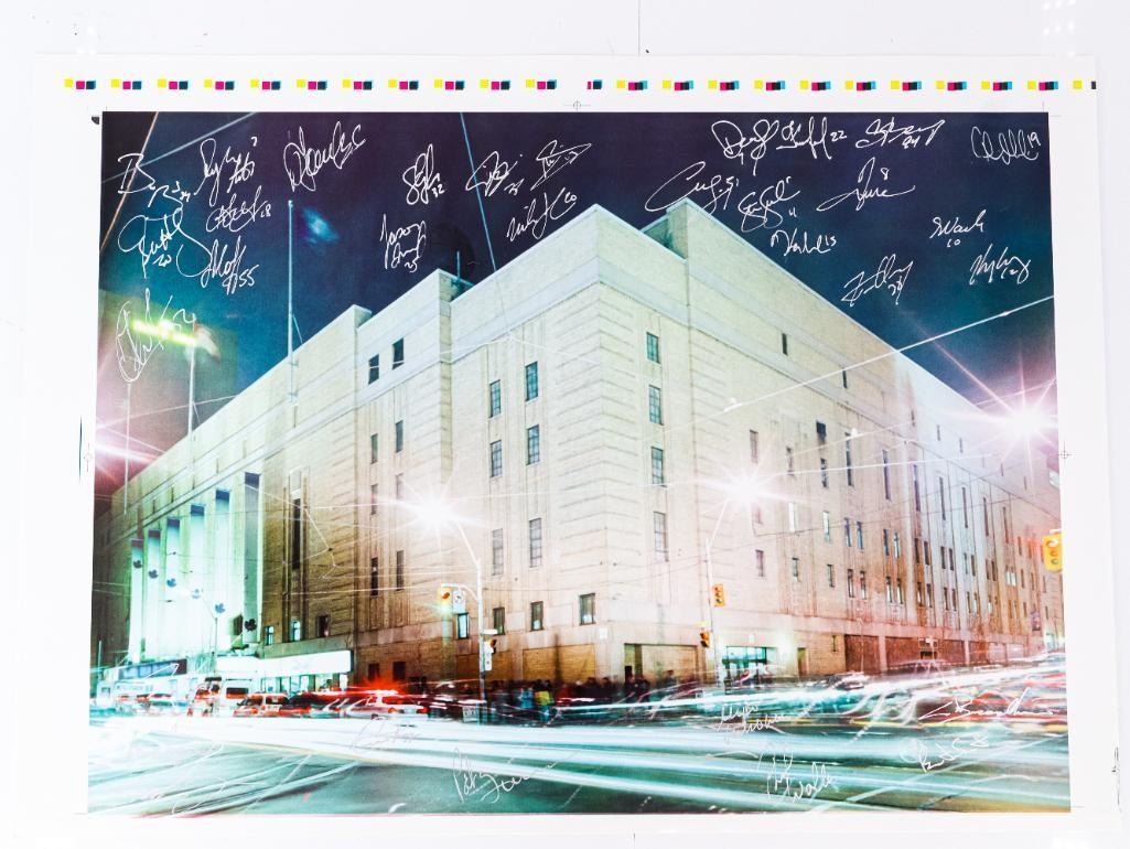 Rare Lithograph of Maple Leaf Gardens1931-1999 - 32 Original Autographs in Silver Leaf. The Last Group of Players, Coaches & Dressing Room Staff to Play The Final Game at MLG. 18 x 25" UF-306185