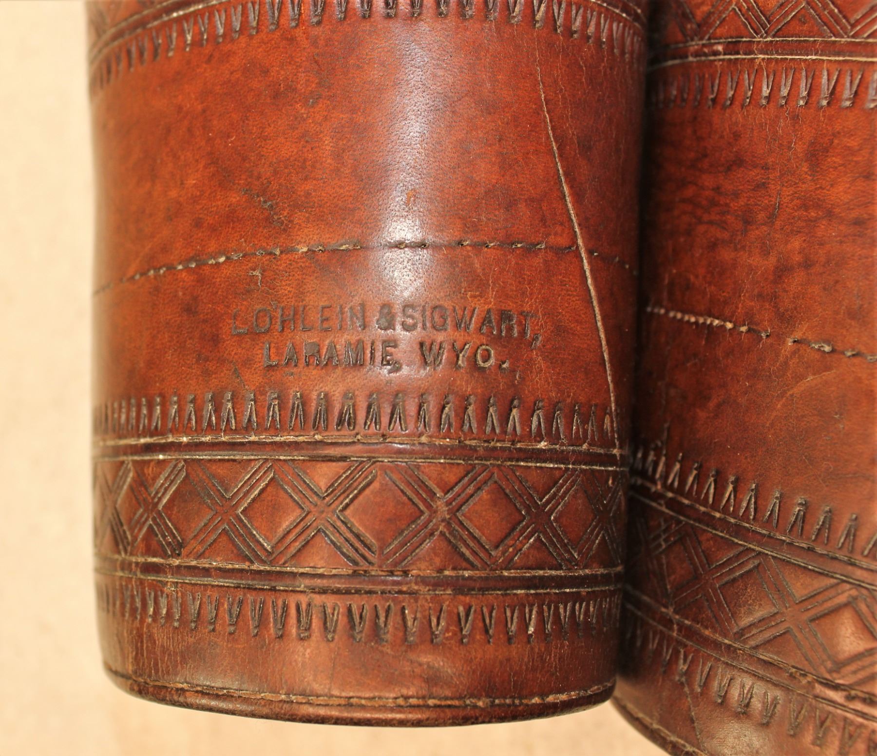 Exceedingly rare Laramie, Wyoming made cuffs, showing nice condition, rich color and an uncommon sheepskin lining. Roger Wilmot Collection